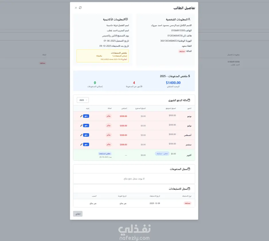 تحكّم كامل في الموظفين، الطلاب، الحسابات، والتقارير من لوحة تحكم واحدة سهلة.