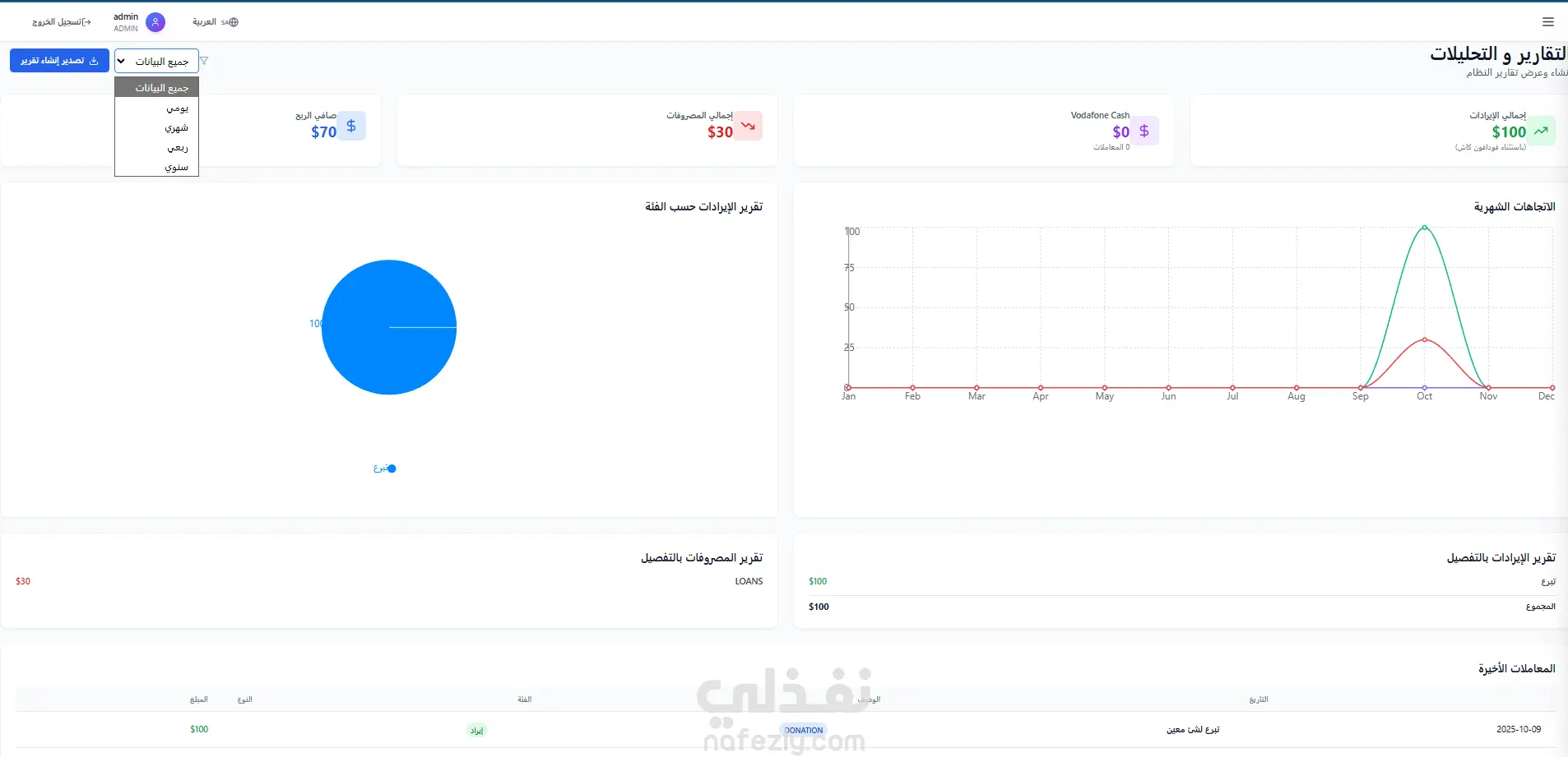 التقارير والإحصائيات ولوحات التحكم
