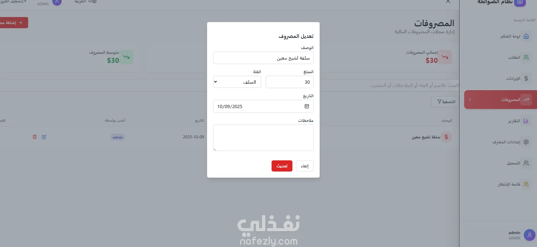 الشؤون المالية (مصروفات – إيرادات – رواتب)