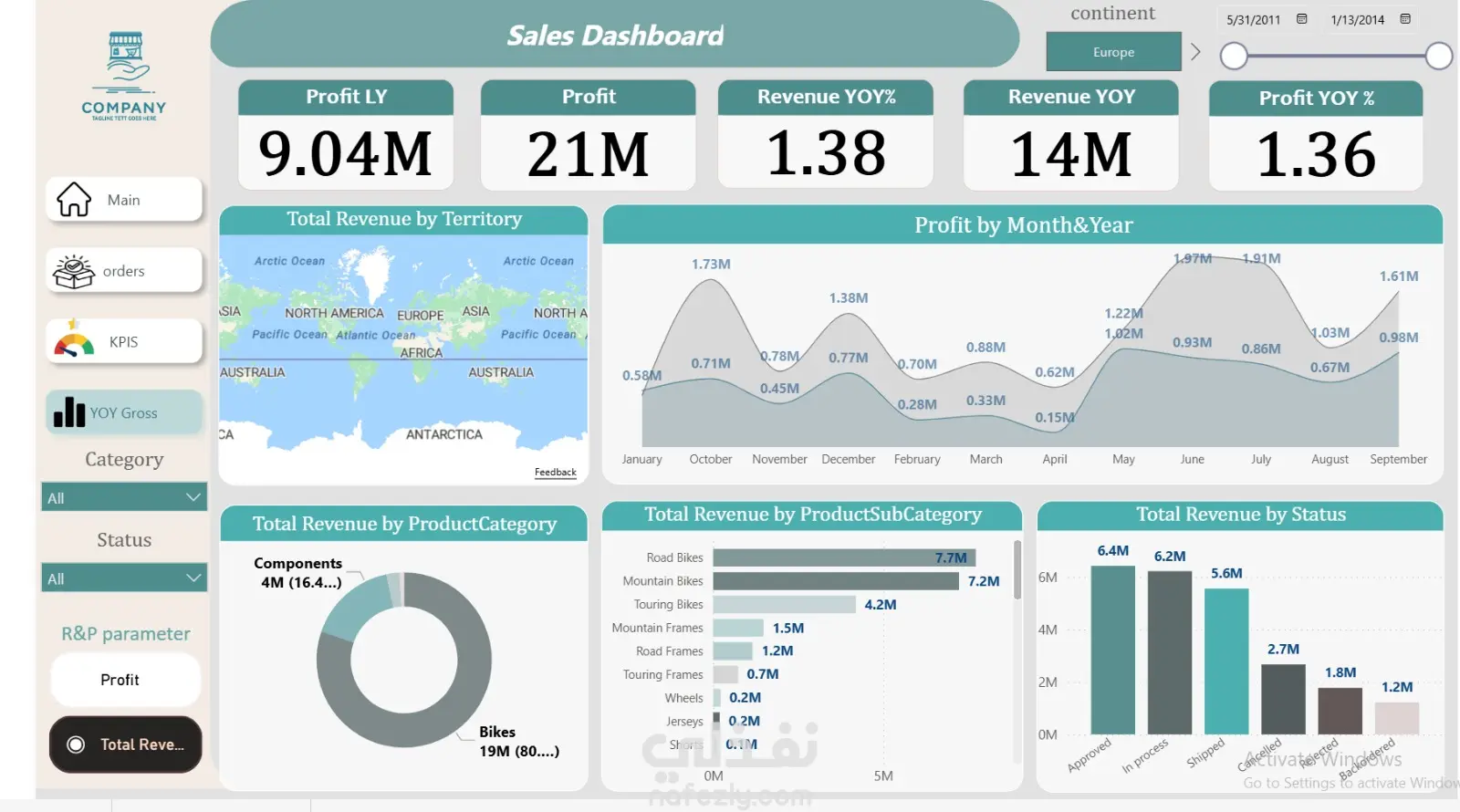 قمت بتنفيذ لوحة تحكم تفاعلية لتحليل أداء المبيعات والإيرادات والأرباح، مع التركيز على تحليل Year-over-Year (YoY). يعرض المشروع مؤشرات الأداء الرئيسية مثل إجمالي الطلبات، الإيرادات، الأرباح، ونسب النمو، مع تحليل الأداء حسب الشهور، فئات المنتجات، والفئات الفرعية. يساعد هذا التحليل على اكتشاف اتجاهات الأداء وتحديد المنتجات الأعلى والأقل ربحية، ويدعم اتخاذ قرارات مبنية على البيانات.