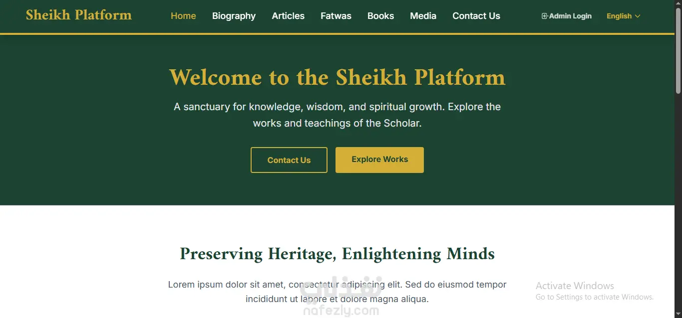 شروع منصة رقمية متكاملة مخصصة للمشايخ والعلماء لنشر المحتوى العلمي والشرعي بطريقة منظمة واحترافية. تم بناء المنصة من الصفر باستخدام أحدث تقنيات الويب لضمان السرعة، الأمان، والتوافق التام مع اللغة العربية (RTL)