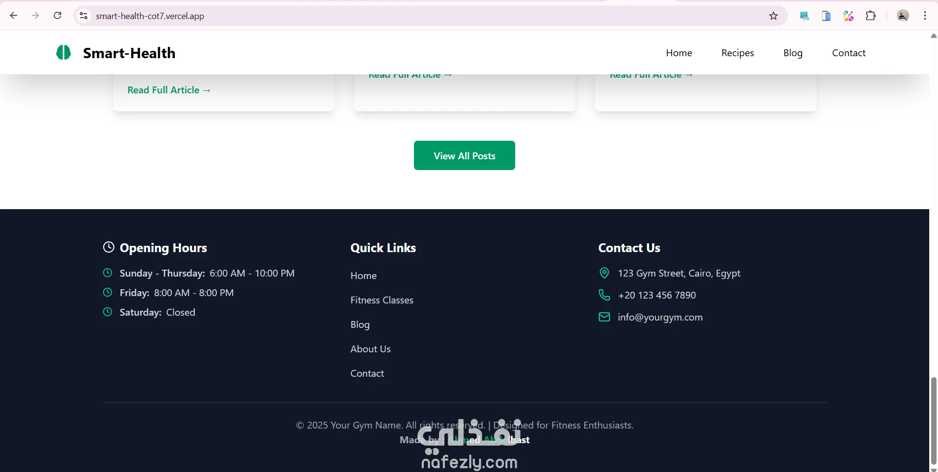 ده موقع تعريفى ل Gim من خلاله تقدر تعرف التمارين والكوتش الموجود ف الجيم وتقدر تعرف السعات اللى موجوده فى كل وجبه من خلال سيرش بسيط ب اسم الوجبه استخدمت تقنيات html css javascript tailwind css Next.js React.js Fetch Api