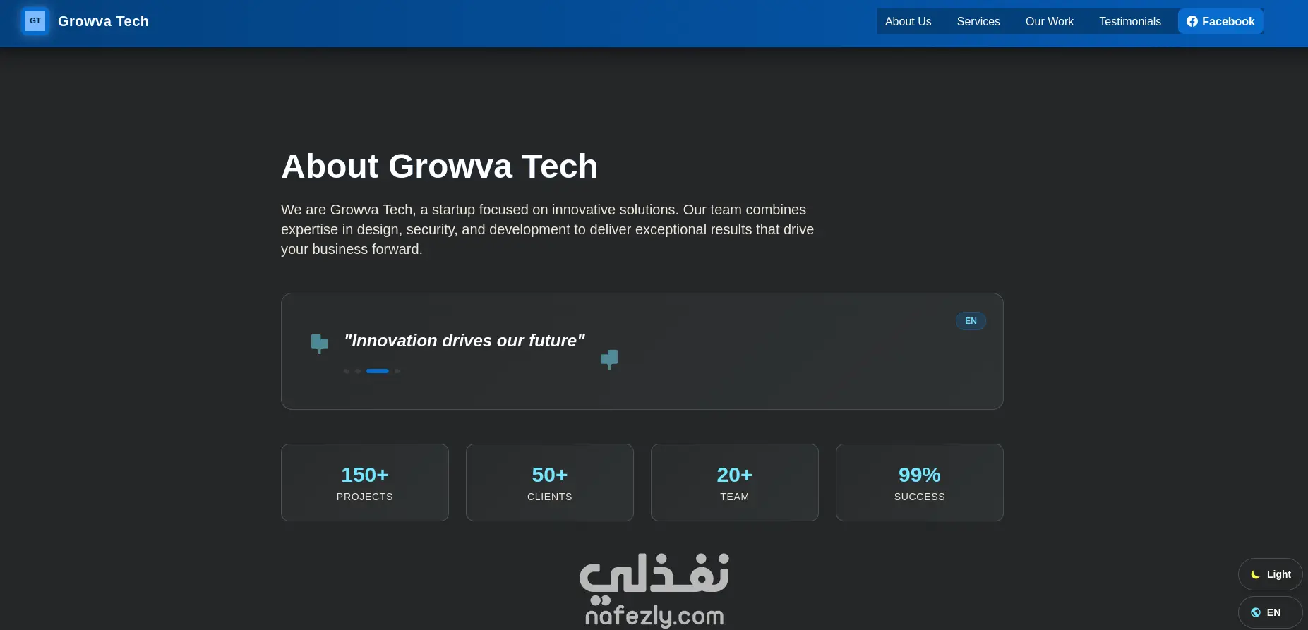 يعتمد الموقع على Carousel ديناميكي لعرض المحتوى بشكل جذاب، مع Timeline Animation تفاعلية تُبرز المراحل أو الإنجازات بطريقة مرئية احترافية. كما يتضمن Spinner متحرك لتحسين تجربة التحميل وإعطاء إحساس بالسرعة والاستجابة.