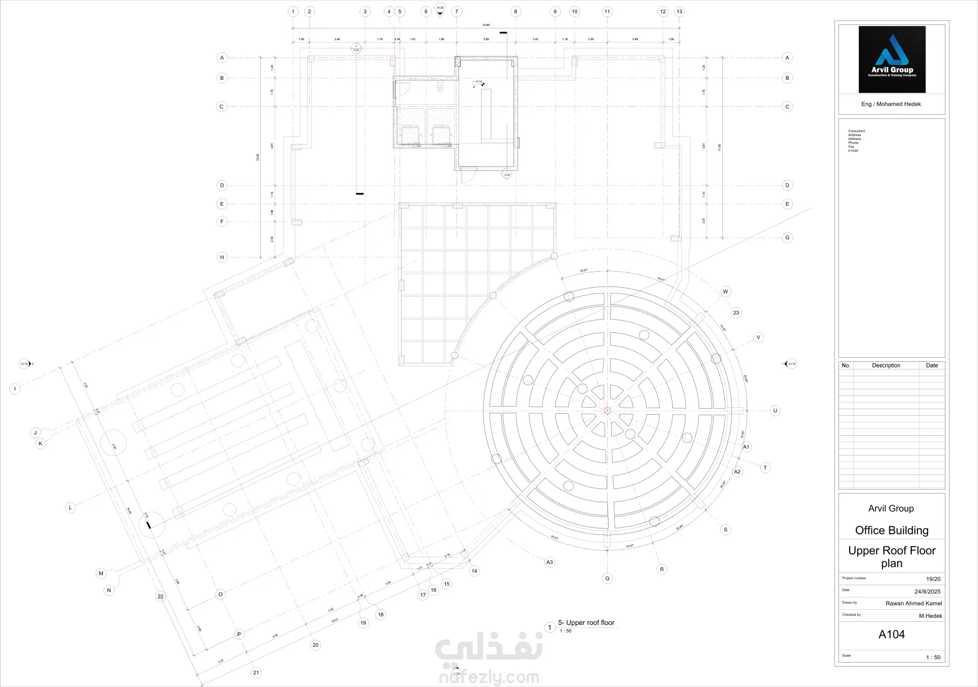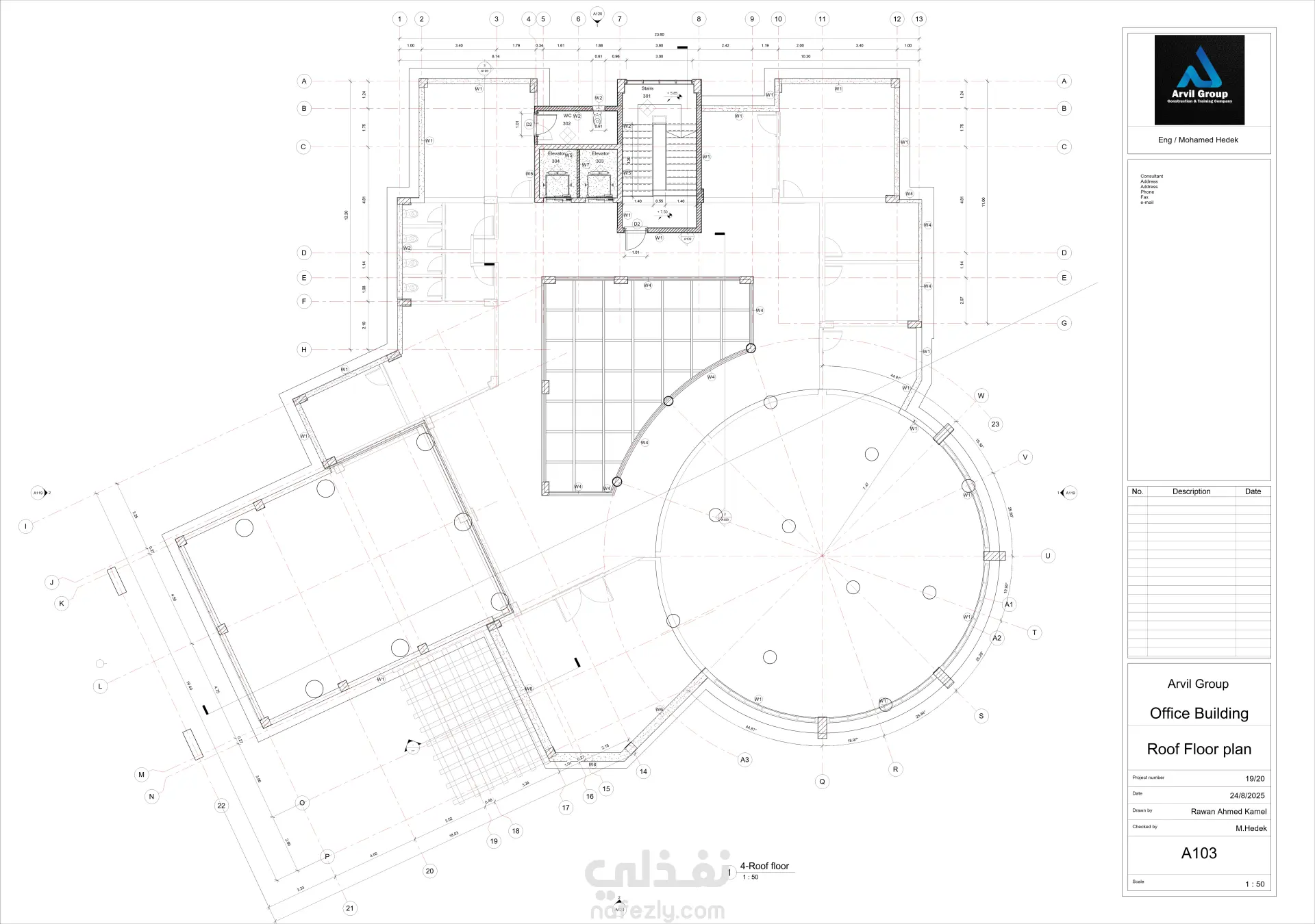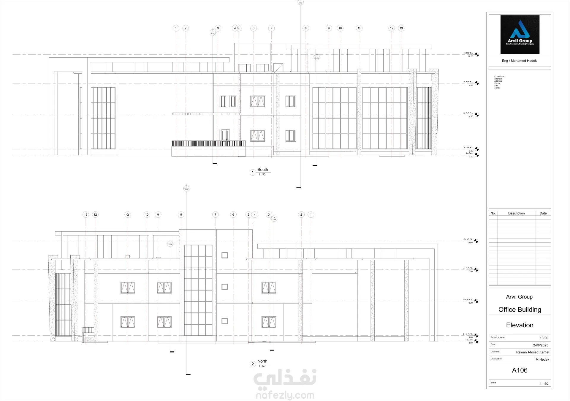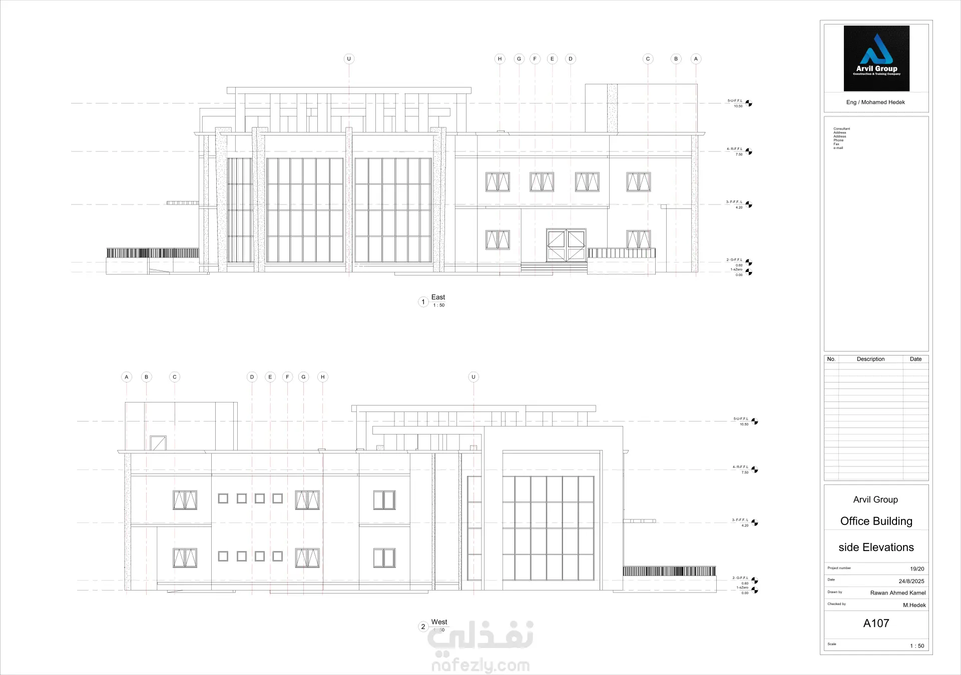 قمتُ بتصميم مبنى إداري حديث يهدف إلى توفير بيئة عمل متكاملة تجمع بين الكفاءة والراحة. ركزت في التصميم على تحقيق انسيابية الحركة بين الفراغات، مع توزيع واضح للأدوار بحيث يخدم كل طابق وظيفة محددة. يتكون المبنى من: مدخل رئيسي فخم مزود ببهو استقبال واسع للزوار. مكاتب إدارية متنوعة الأحجام تناسب فرق العمل والإدارات المختلفة. قاعات اجتماعات. مناطق خدمات تشمل دورات مياه، مطبخ صغير ،كافيتريا. ممرات مدروسة تحقق سهولة الحركة والربط بين الأقسام. مصاعد وسلالم لتحقق راحة الزوار والمتسخدمين تمت مراعاة عناصر الإضاءة الطبيعية والتهوية لخلق بيئة عمل صحية، مع تصميم واجهة خارجية عصرية تعكس هوية المبنى وتعطي طابعًا من الرقي والاحترافية.