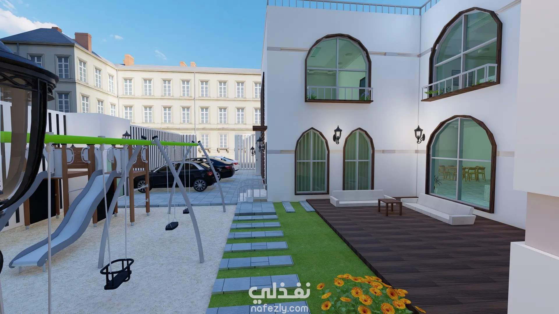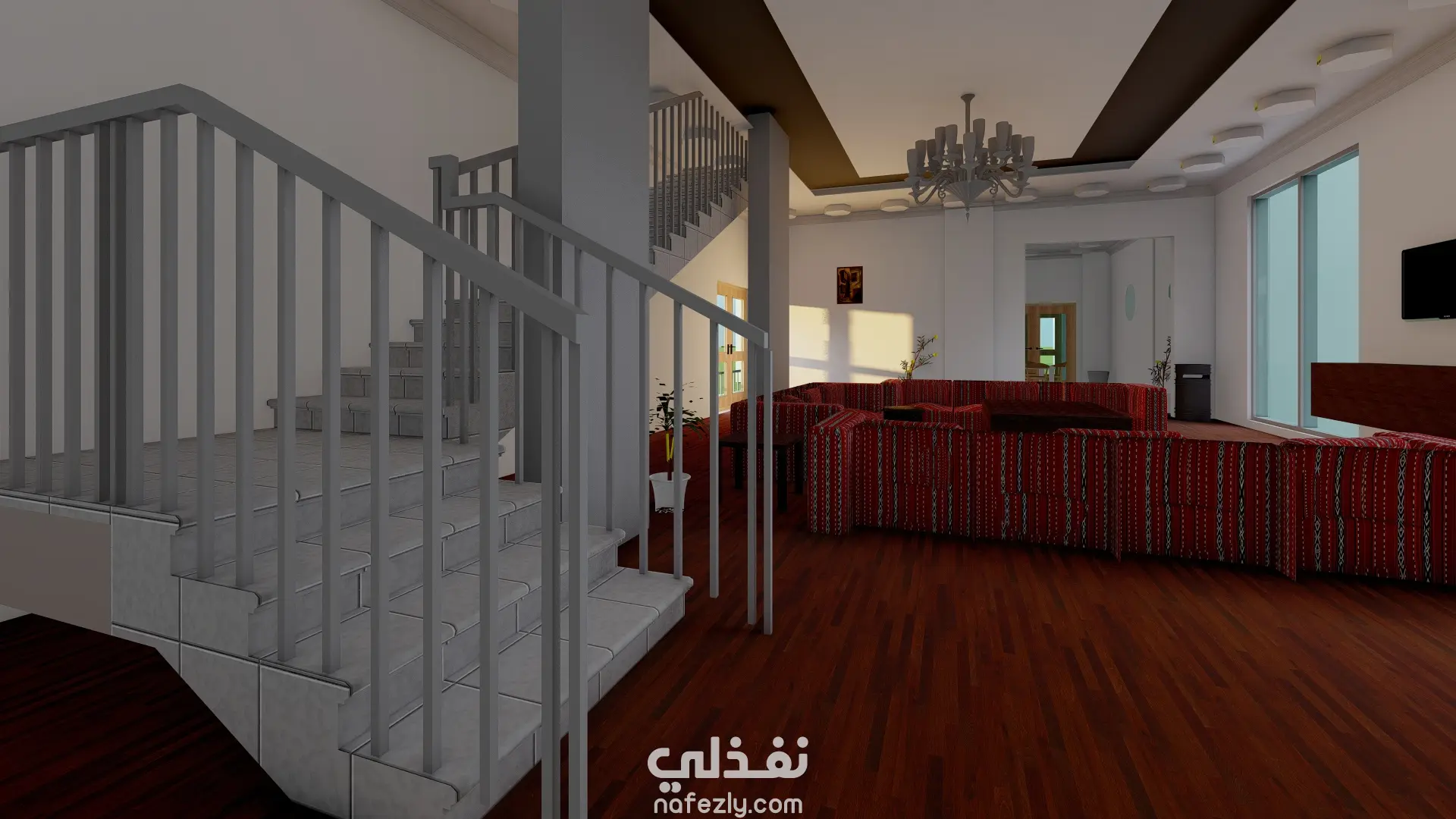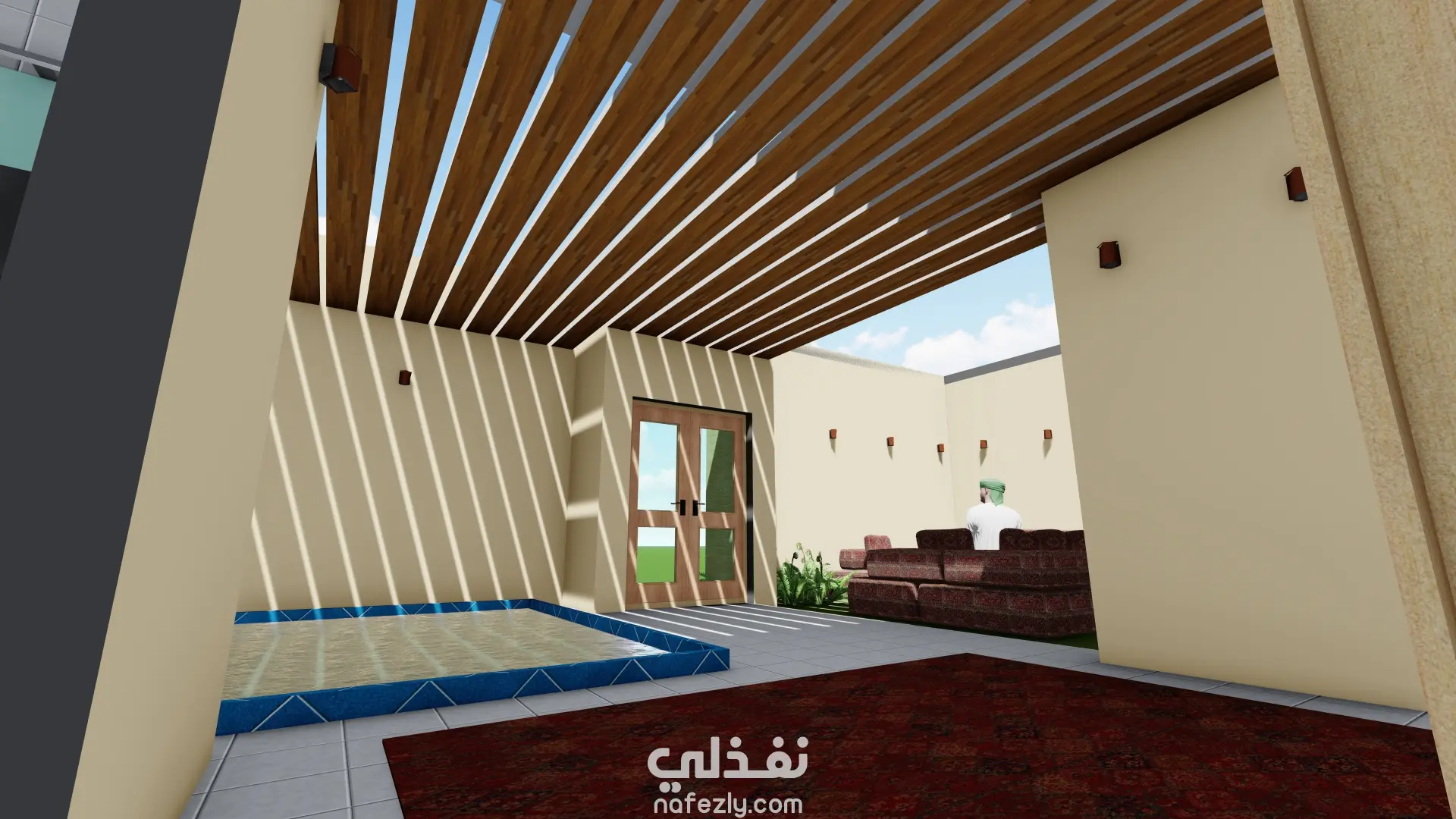 تصميم 3d داخلى وخارجى لاستراحة وشايليهين زملحقاتهم