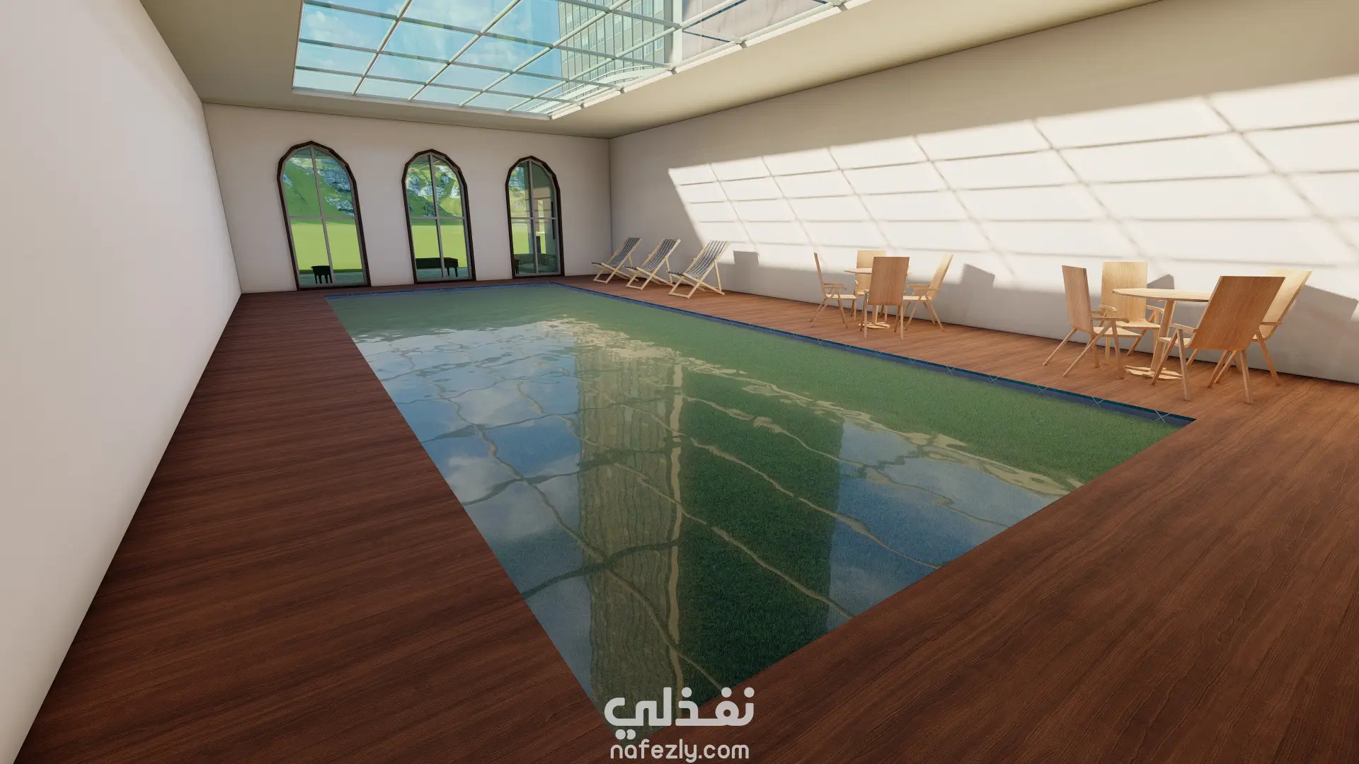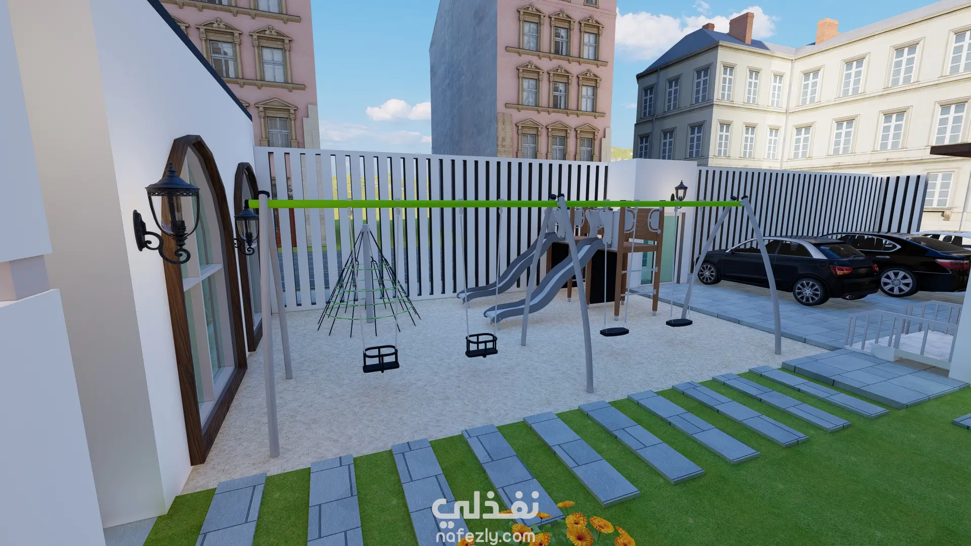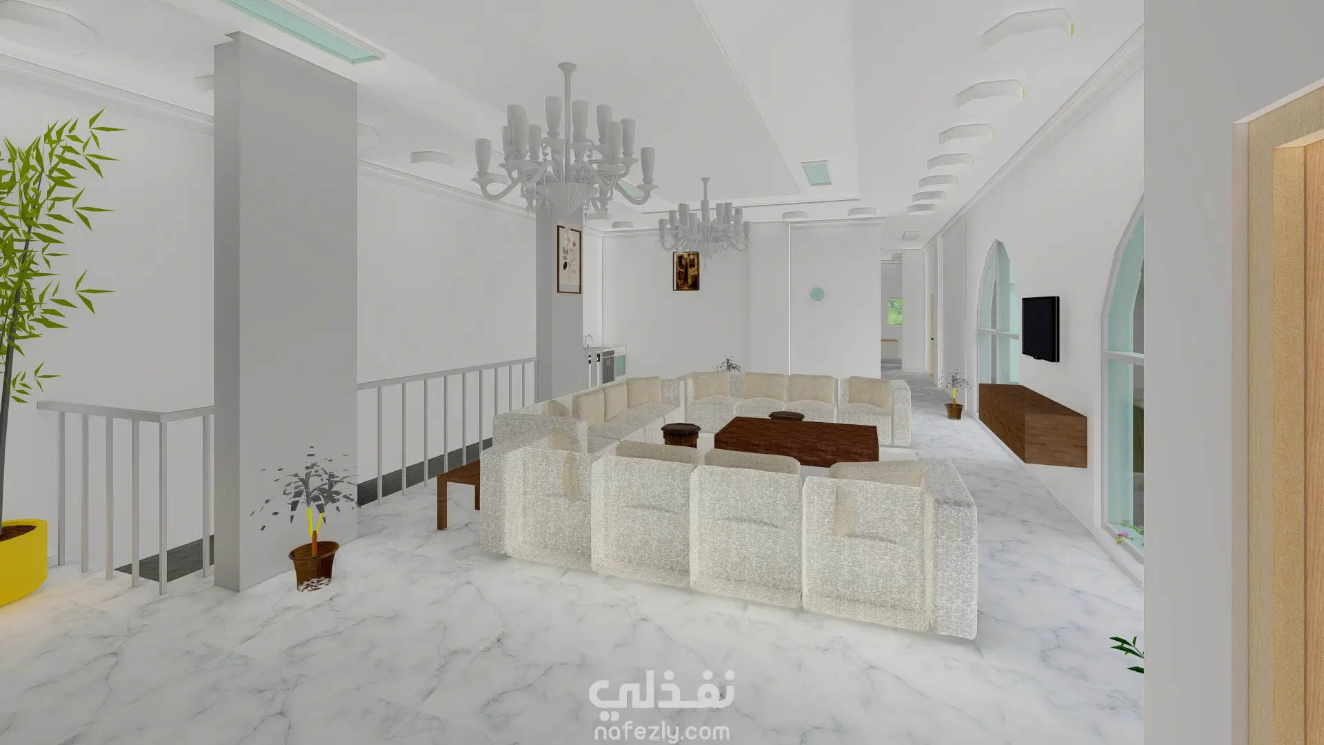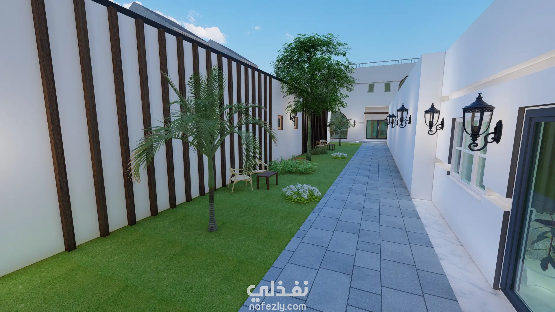 تصميم 3d داخلى وخارجى لاستراحة وشايليهين زملحقاتهم