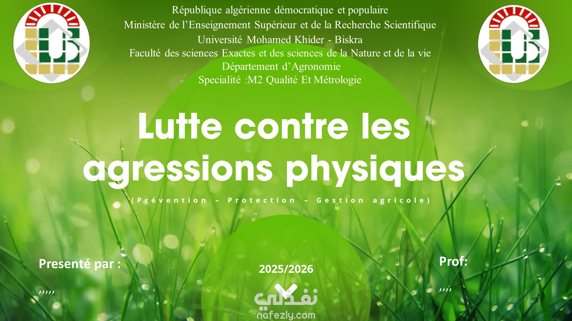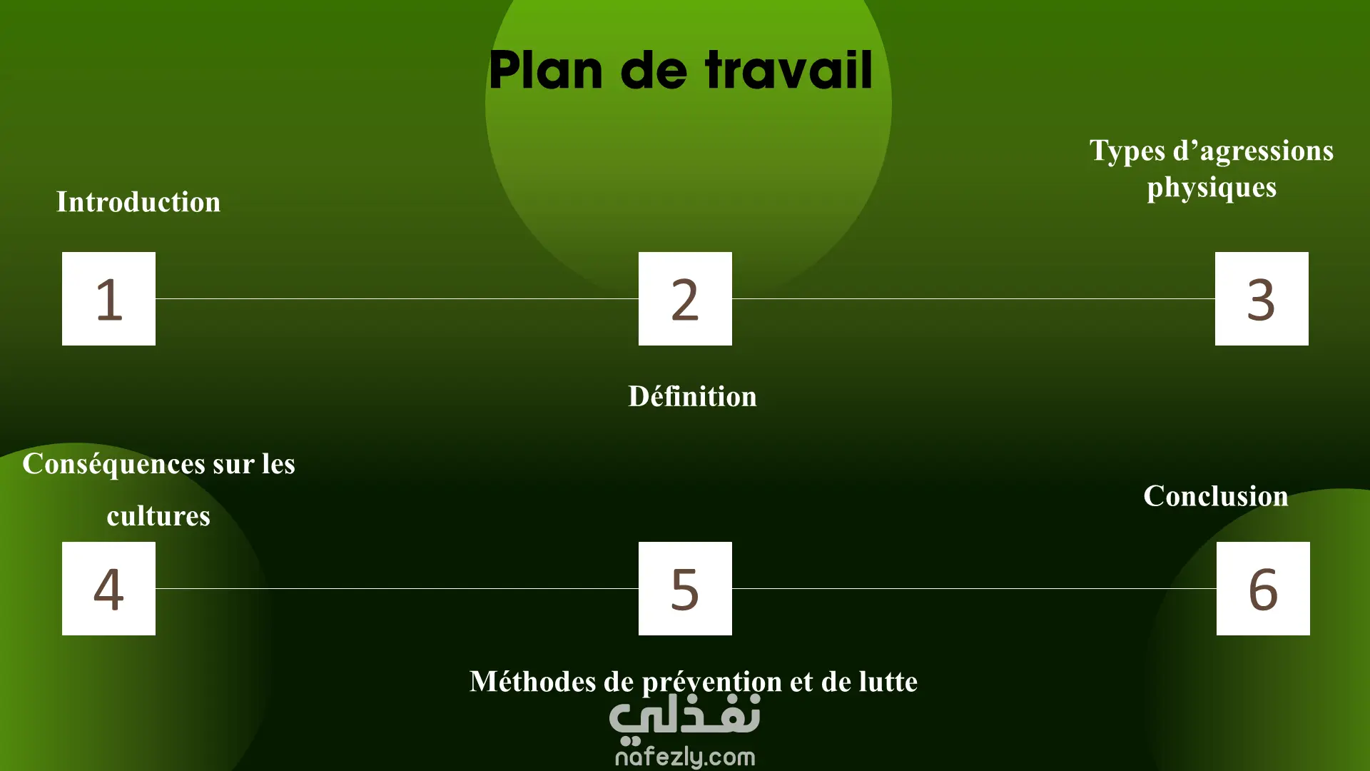 Présentation PowerPoint avec un design moderne, des couleurs vertes apaisantes, des animations fluides et des images explicatives. Le contenu est clair, structuré et orienté vers la sensibilisation et la prévention des agressions physiques.