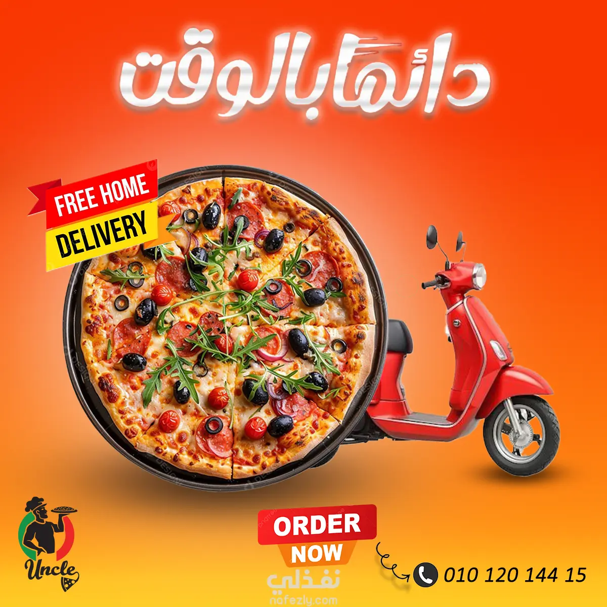 تصميم إعلان احترافي لطعام يتميز بأسلوب عصري وجذاب، يعتمد على خلفية داكنة لإبراز ألوان الطعام وإعطائه مظهرًا فاخرًا وشهيًا. تم توظيف صورة عالية الجودة لطبق طعام في المنتصف كعنصر بصري أساسي لجذب الانتباه وإثارة الشهية.