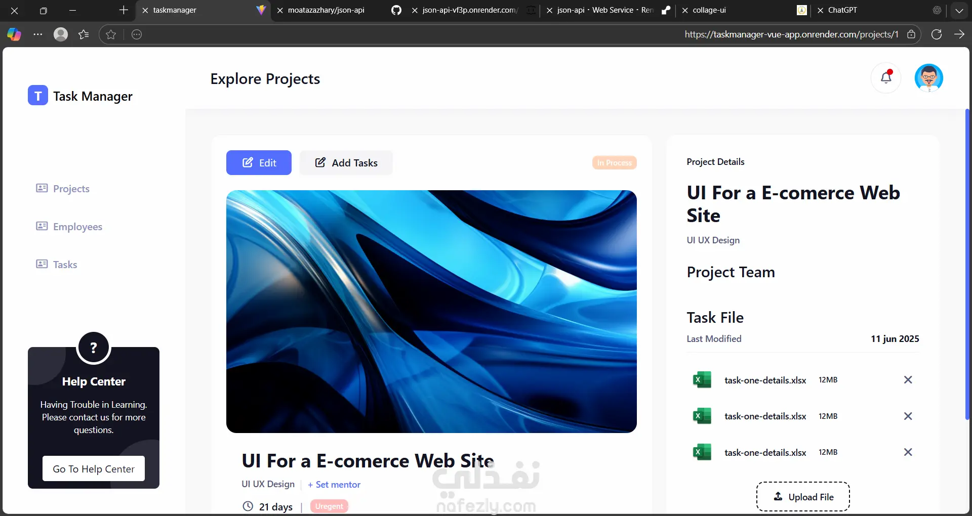 TaskManager هو موقع ويب لإدارة المهام تم تطويره باستخدام Vue.js و Vite، ويهدف إلى محاكاة نظام إداري مبسط لإدارة فرق العمل والمشاريع. يوفّر الموقع نظام Roles لتحديد الصلاحيات، بالإضافة إلى إدارة Tasks و Projects وتنظيم العلاقة بين Mentors و Employees. يعتمد الموقع في التعامل مع البيانات على JSON API لتمثيل عمليات الجلب، الإضافة، التعديل والحذف، مما يجعله مناسبًا لتجربة مفاهيم العمل مع RESTful APIs في بيئة Frontend حديثة. تم تنفيذ المشروع لأغراض تدريبية وتعليمية فقط، بهدف تطبيق المفاهيم الأساسية في Vue مثل: إدارة الحالة التعامل مع APIs تقسيم الواجهة إلى Components تنظيم الصلاحيات والأدوار هيكلة مشروع باستخدام Vite الموقع غير مخصص للاستخدام الإنتاجي، وإنما كتمرين عملي لتطوير مهارات بناء تطبيقات الويب.