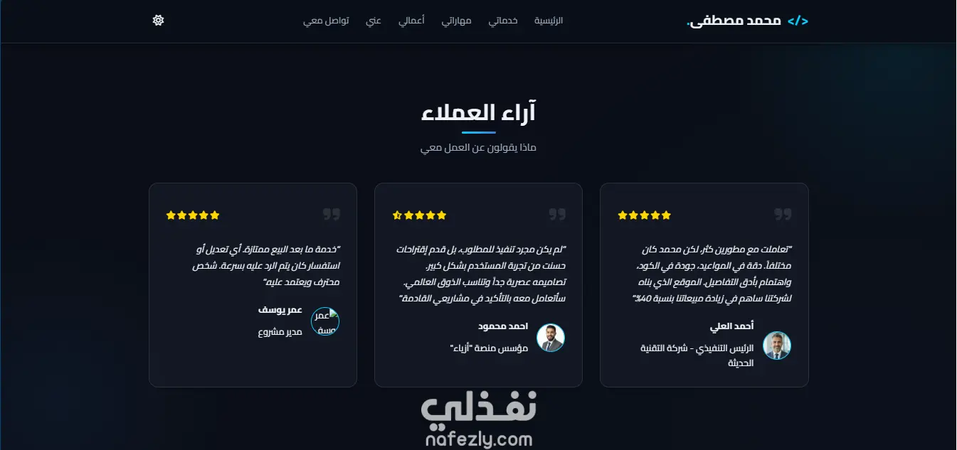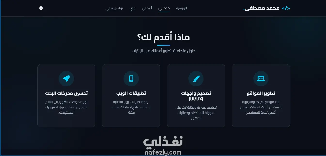 المشروع يعكس خبرتي في تصميم وبناء مواقع شخصية احترافية تركز على الأداء وتجربة المستخدم وبناء حضور رقمي قوي.