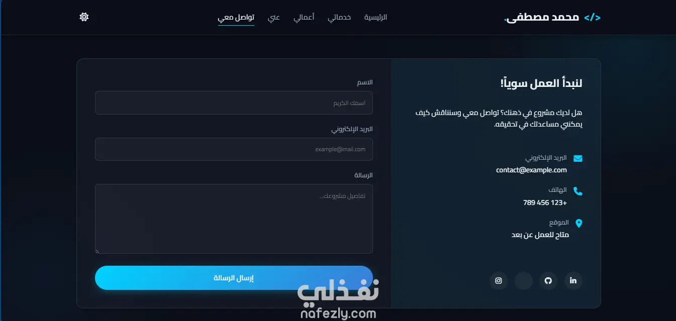 صفحة تواصل احترافية لإرسال الرسائل بسهولة