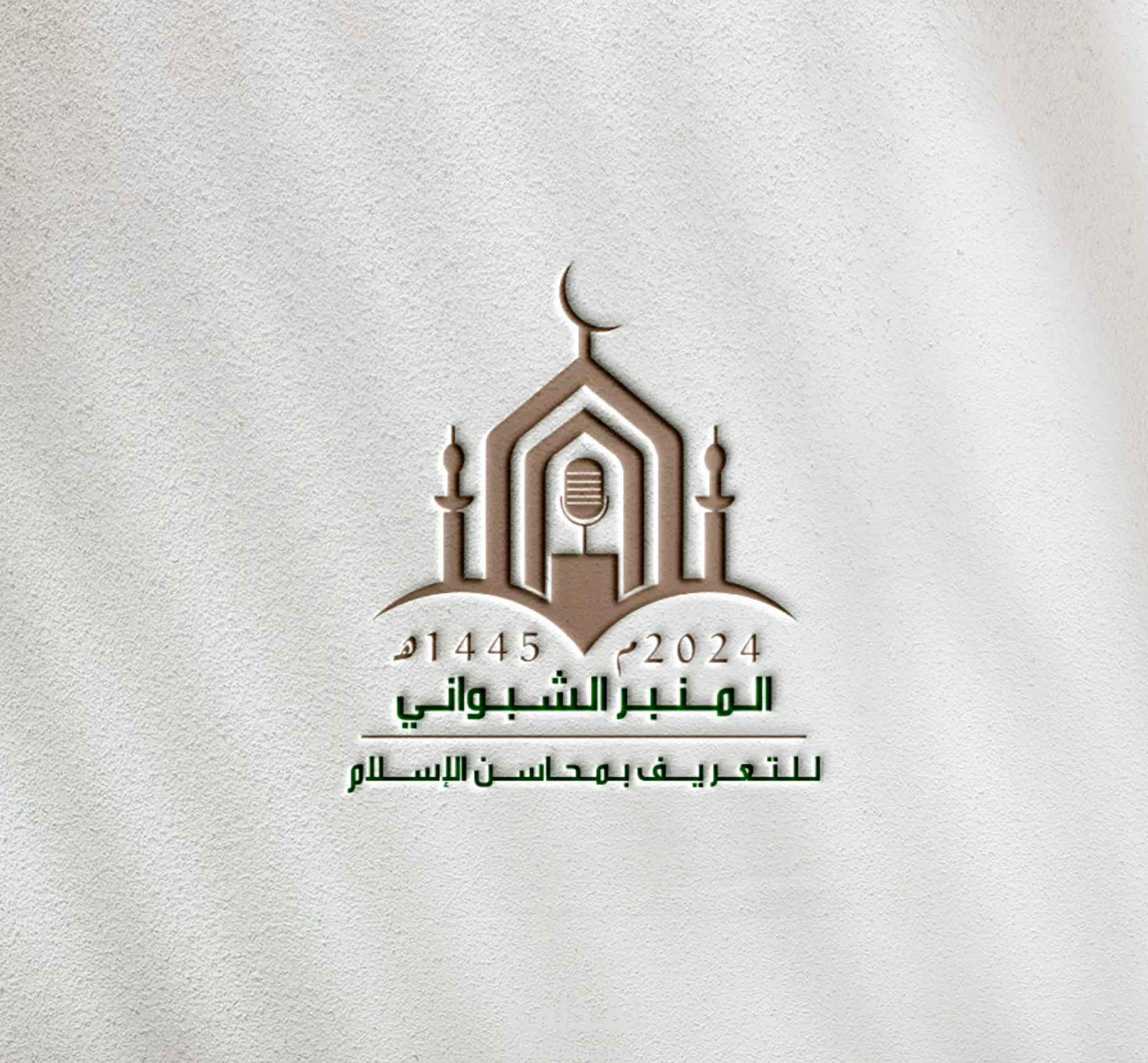 شعار المبنر الشبواني بطابع ديني يعكس القيم الإسلامية بأسلوب هادئ ومتزن، صُمّم ليبرز الهوية الروحية والوقار مع وضوح الاسم وسهولة استخدامه في مختلف الوسائط.