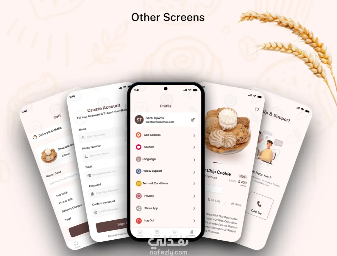 تصميم UI/UX لتطبيق بيع المخبوزات أونلاين