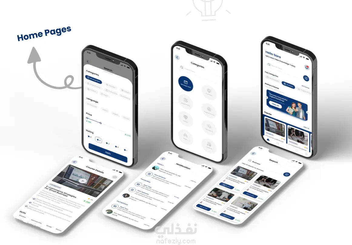 تصميم UI/UX لتطبيق نظام إدارة التعلم (LMS)