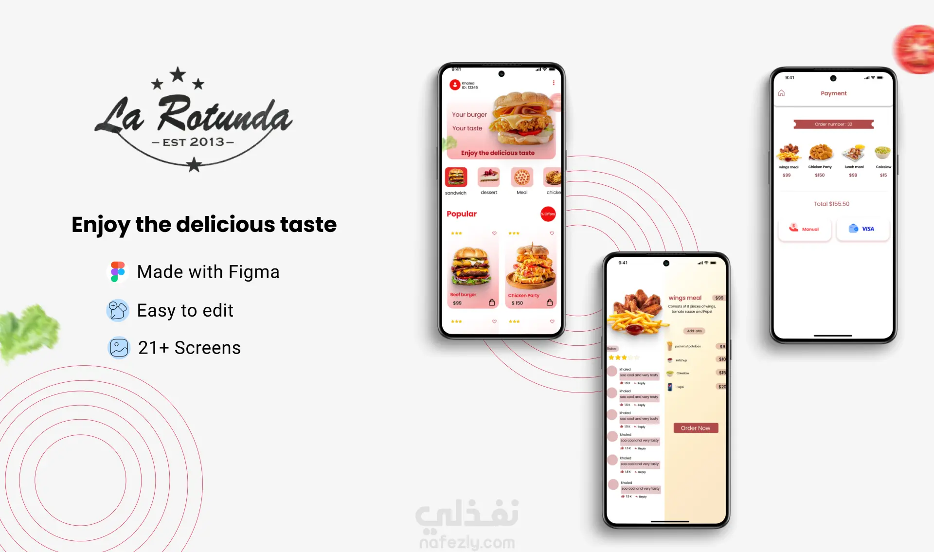قمت بتصميم واجهة وتجربة مستخدم متكاملة لتطبيق مطعم يتيح للمستخدمين تصفح المنيو، اختيار الوجبات، وإتمام الطلب بسهولة سواء للتوصيل أو الاستلام من الفرع. ركزت في التصميم على إبراز صور الأطعمة، سهولة الوصول للأقسام، وتجربة طلب سريعة وسلسة، مع واجهات جذابة تعكس هوية المطعم وتزيد من تفاعل المستخدم. نطاق العمل يشمل: تصميم الصفحة الرئيسية وقائمة المنيو تصميم صفحة تفاصيل الوجبة تصميم سلة الطلبات وإتمام الطلب تتبع الطلب وحالة التوصيل تنفيذ التصميم باستخدام Figma