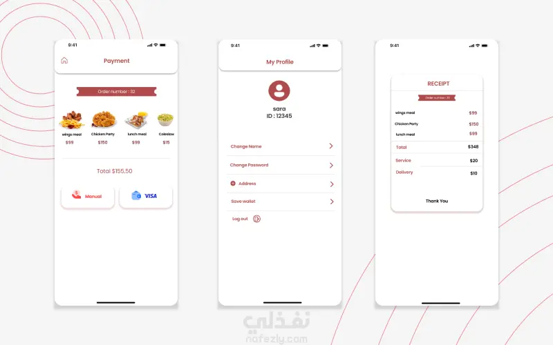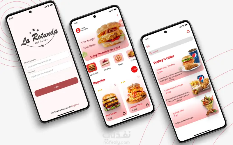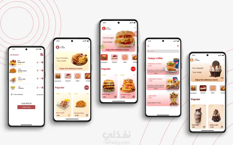 تصميم UI/UX لتطبيق مطعم لطلب الطعام أونلاين