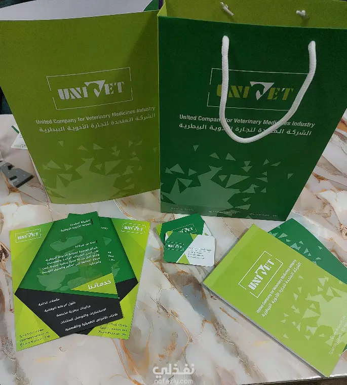 تصميم هوية بصرية لشركة ادوية حيوانية في الامارات Business Card - Folder - Flyers - Bag - Note pad تم تنفيذه باستخدام Adobe illustrator و Adobe photoshop