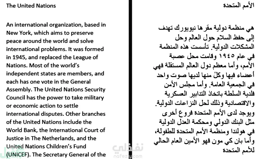 لقد قمت بكتابة موضوع سياسي مهم عن الامم المتحدة و قمت بكتابته من الانجليزية و ترجمته إلى العربية و لم استعمل اي مساعده من قوقل