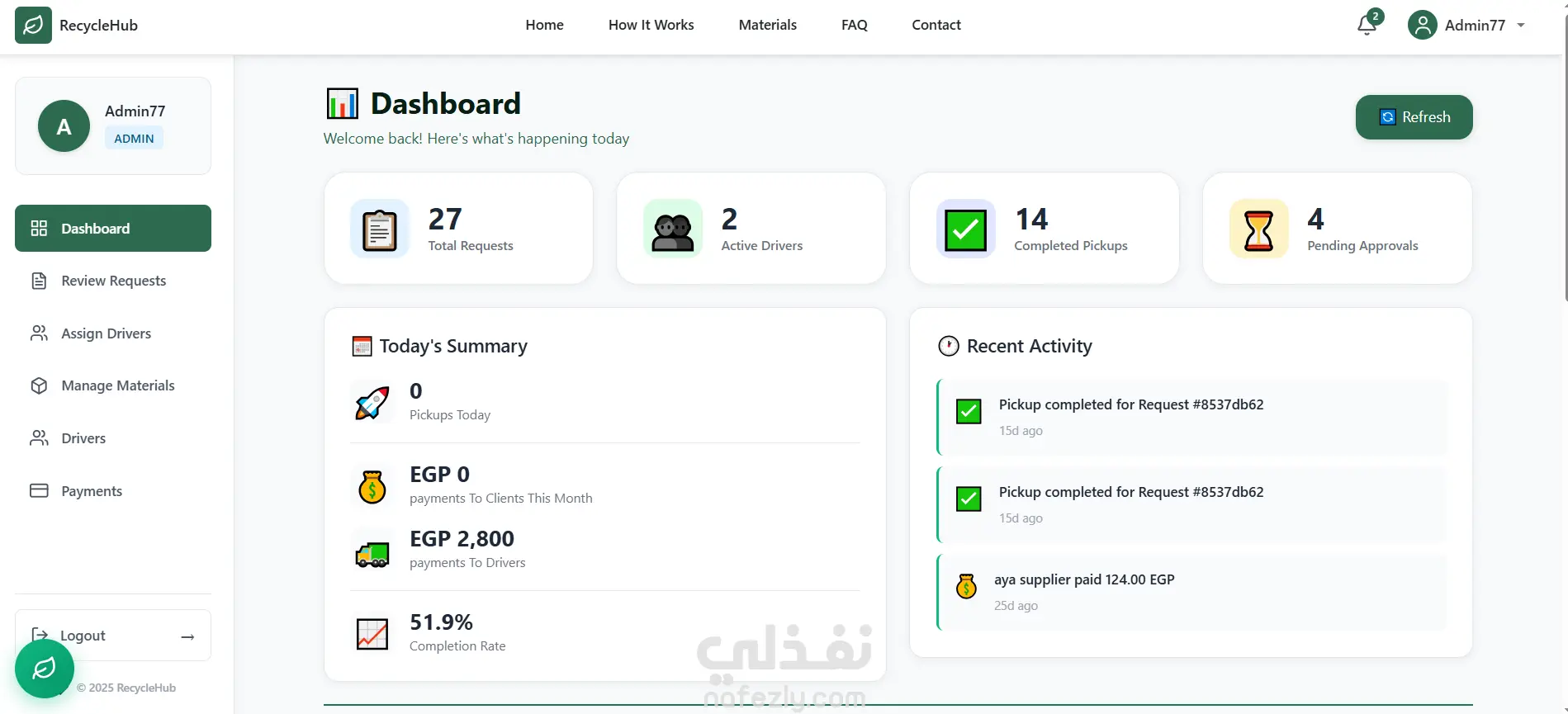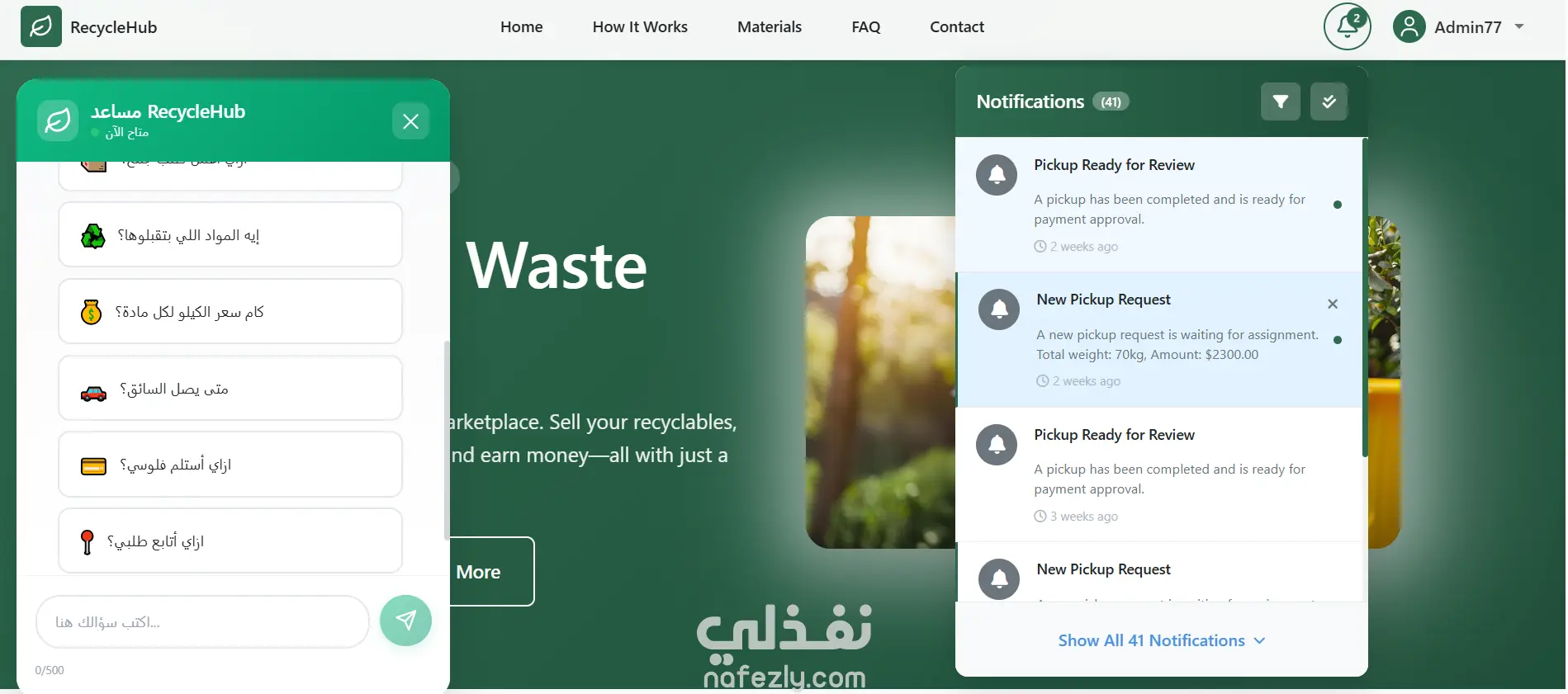 Recycle Hub is a smart digital platform designed to streamline and optimize the recycling process by connecting all stakeholders within a single system. ?️ Architecture & Technical Highlights: Clean Architecture with clear separation of layers: Domain Layer Application Layer Infrastructure Layer API Layer Repository & Unit of Work patterns JWT Authentication with Role-based Authorization GitHub Flow for effective team collaboration ?️ Tech Stack: Backend ASP.NET Core 9.0 Entity Framework Core SQL Server JWT Authentication AI Chatbot with RAG (Retrieval-Augmented Generation) Frontend: • Angular 20 • Bootstrap 5 ? Additional Features: Real-time notification system between all roles using SignalR Integrated AI Chatbot powered by Fireworks AI Secure role-based access control Real-time request tracking and status updates Payment Integration: Users receive payments via PayPal and Suppliers pay via Stripe This project provided hands-on experience in full-stack development, system design, real-time applications, and third-party integrations. GitHub: [https://github.com/orgs/GreenRecyclePlatform/repositories] Live-Demo: [https://recycle-web-zj2n.vercel.app/]