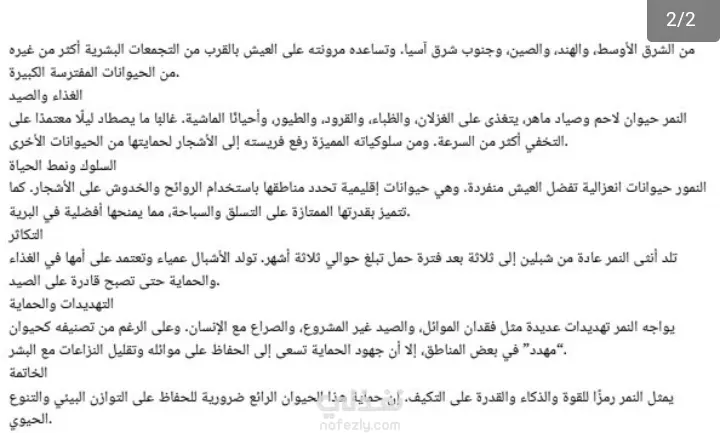 بحث شامل عن النمر مترجم من الانجليزية الي العربيه