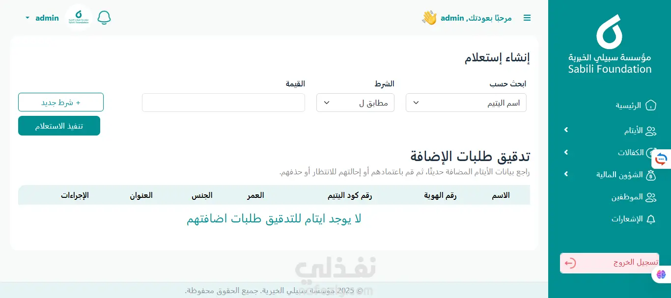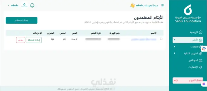Sabili – منصة إدارية رقمية متكاملة لإدارة شؤون الأيتام والبيانات التشغيلية بكفاءة وأمان