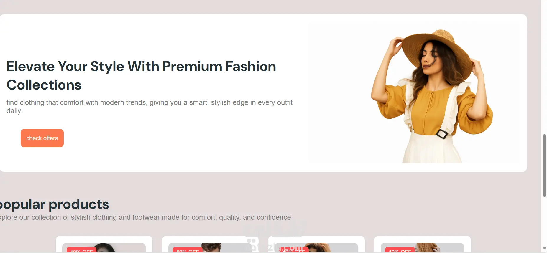 تطوير متجر إلكتروني (E-commerce Website) باستخدام React.js لعرض وبيع المنتجات عبر الإنترنت، مع التركيز على الأداء العالي وتجربة مستخدم سلسة وسريعة التقنيات المستخدمة React.js JavaScript HTML CSS React Hooks Axios / Fetch API (لجلب البيانات)