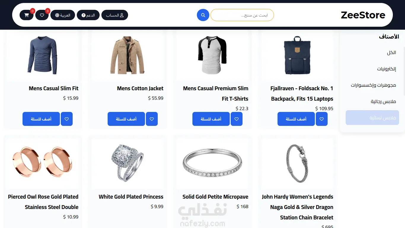 واجهة متجر إلكتروني بسيطة قابلة للتخصيص (HTML/CSS/JAVASCRIPT)