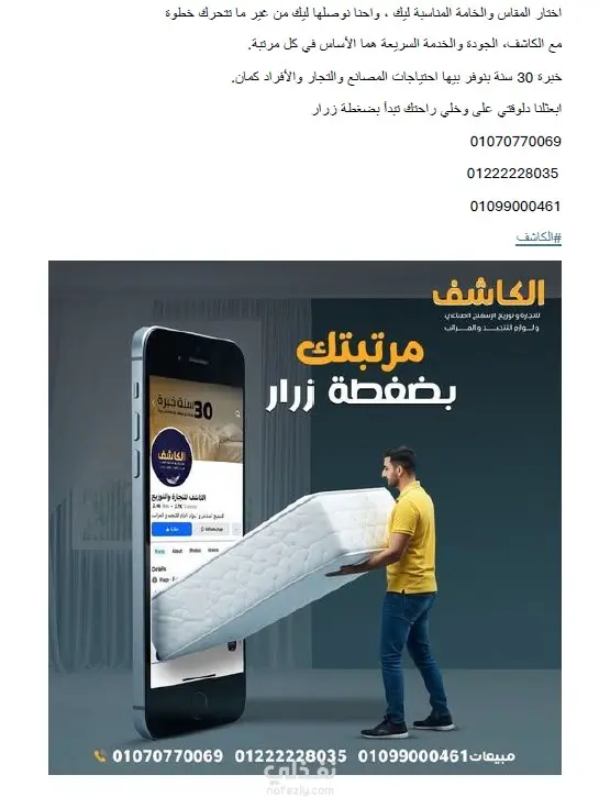 كتابة محتوى وتسويق صناعي لشركة الكاشف لصناعة الأثاث والمراتب