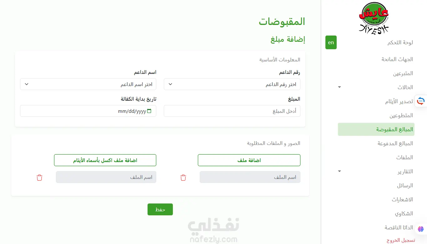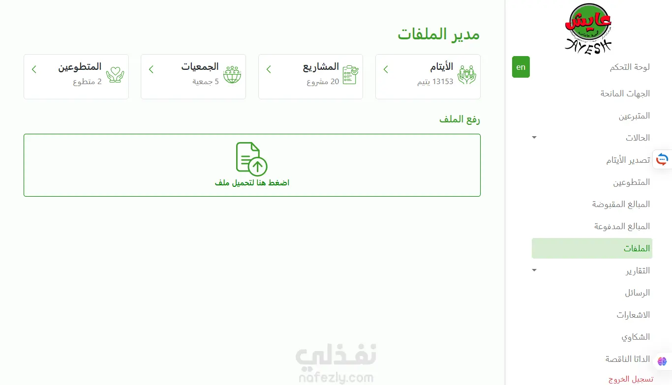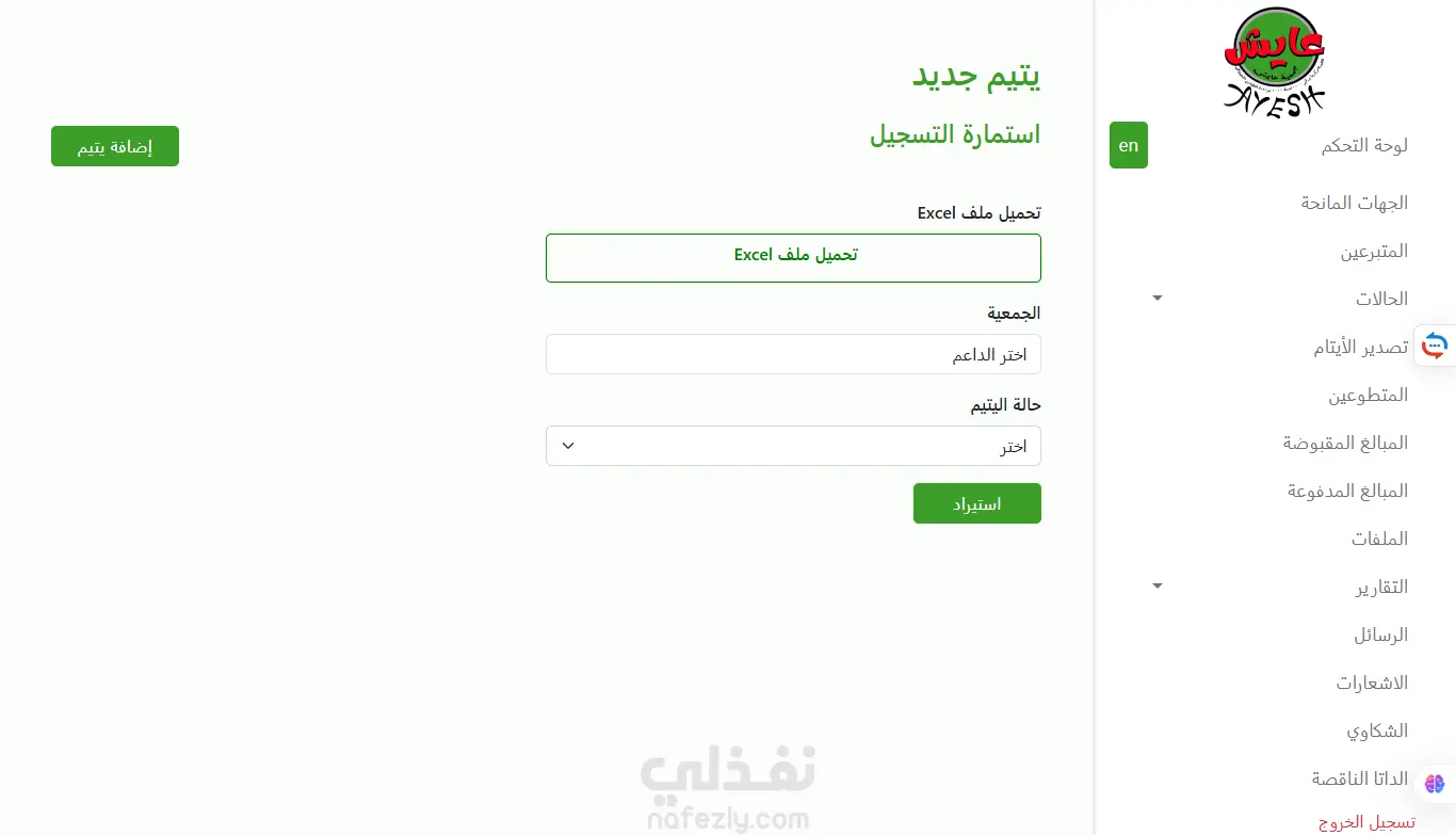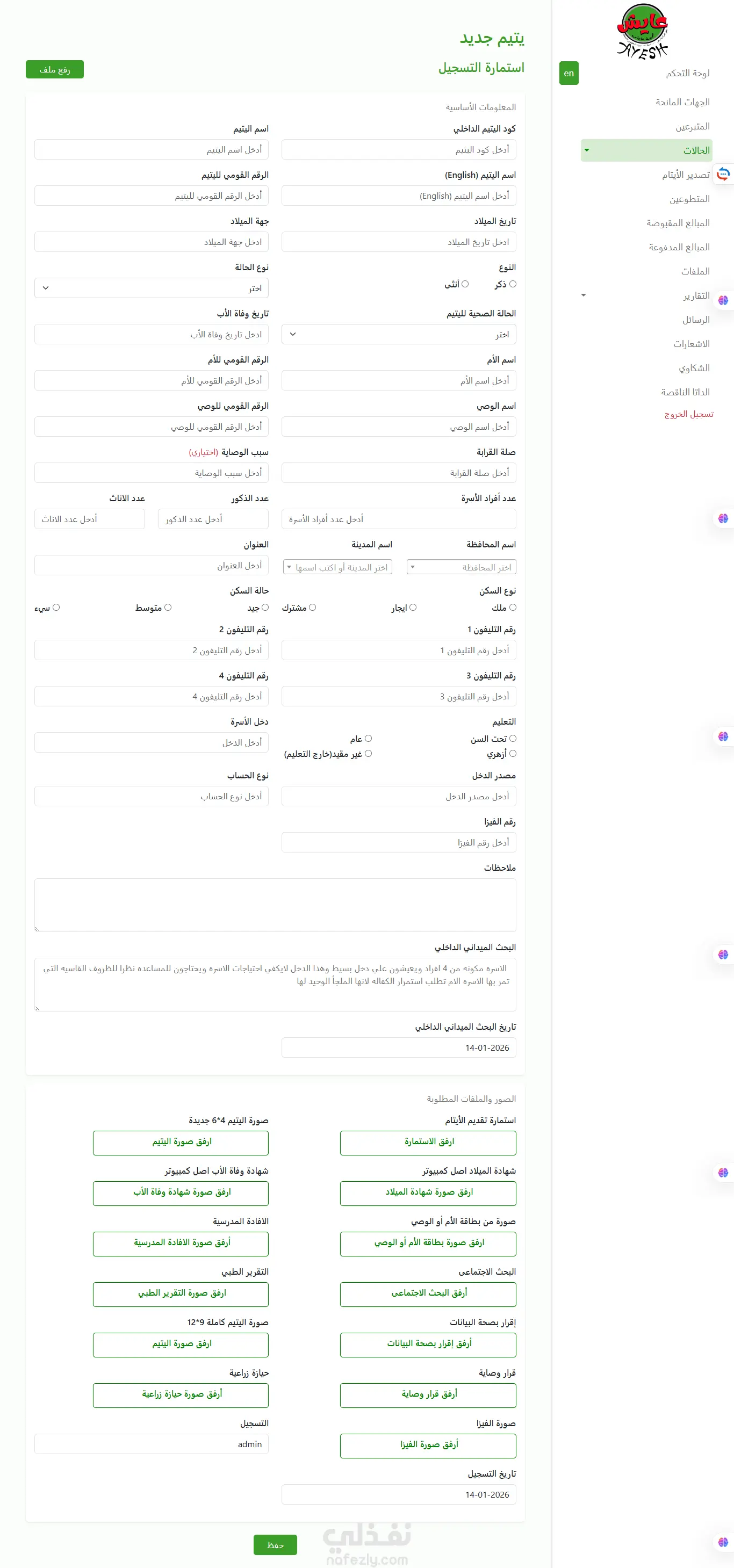 منصة إدارية رقمية متكاملة لإدارة شؤون الأيتام والرعاية الاجتماعية، تم تصميمها لدعم العمل المؤسسي اليومي من خلال تنظيم البيانات، إدارة الملفات، وتتبع العمليات المالية والإدارية ضمن نظام موثوق وآمن. يوفر النظام لوحة تحكم مركزية تتيح إدارة تسجيل الأيتام، متابعة حالاتهم، إدارة الموظفين والمتطوعين، توثيق المستندات، تتبع الأرصدة والمصروفات، ومراجعة واعتماد البيانات وفق صلاحيات محددة. المنصة مبنية لتلبية احتياجات المؤسسات والجمعيات في الإدارة الداخلية، مع واجهة عربية سهلة الاستخدام، ودعم لاستيراد البيانات، والبحث، والتقارير التشغيلية، دون أي مكونات متعلقة بجمع التبرعات أو الحملات العامة.