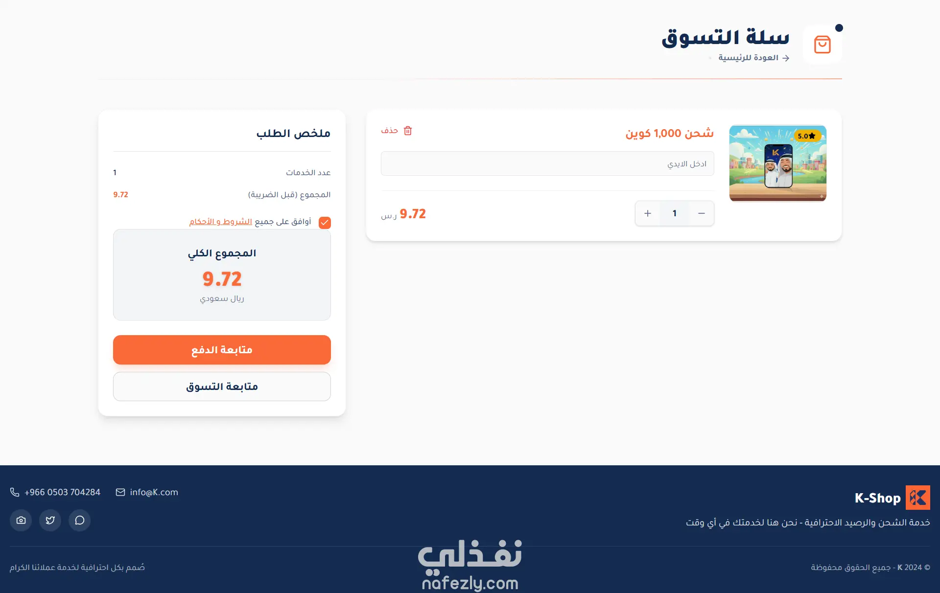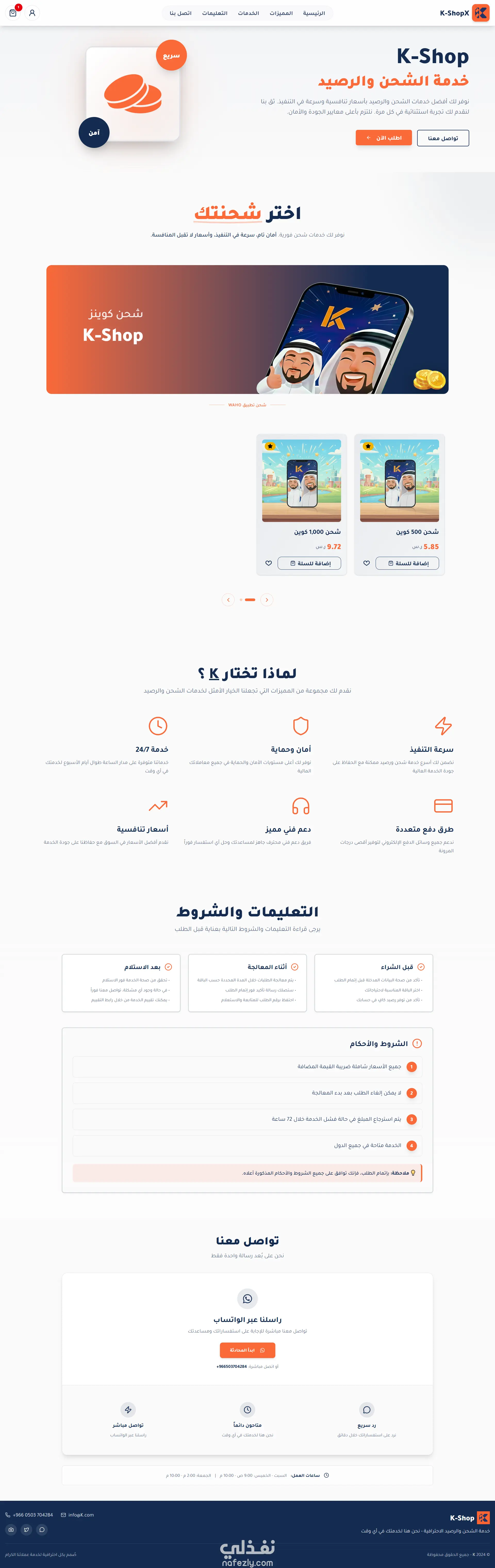 منصة إلكترونية متكاملة لبيع وشحن الكوينز (Coins) تحت اسم K-Shop، تهدف إلى تقديم تجربة شراء سريعة، آمنة، وسلسة للمستخدمين، مع واجهة عصرية تعتمد على الأداء العالي وسهولة الاستخدام. وصف عام للمشروع K-Shop هي منصة رقمية متخصصة في شحن الكوينز والرصيد لمجموعة من التطبيقات المختلفة، حيث تم تصميمها لتوفير تجربة مستخدم بسيطة وواضحة، مع سرعة في تنفيذ الطلبات ودعم كامل لعمليات الدفع والمتابعة. المزايا والوظائف التي تم تنفيذها - واجهة المستخدم (UI/UX) - تصميم عصري وسلس مع Animations خفيفة تعزز تجربة الاستخدام. - واجهة متجاوبة تعمل بكفاءة على جميع الأجهزة (Desktop – Tablet – Mobile). - تنظيم المحتوى والخدمات بطريقة واضحة تسهّل على المستخدم اتخاذ قرار الشراء. نظام الحسابات - صفحة تسجيل دخول وإنشاء حساب سهلة وآمنة. - صفحة بروفايل المستخدم لعرض بيانات الحساب ومتابعة الطلبات. - تجربة استخدام مبسطة تقلل عدد الخطوات للوصول للخدمة. - سلة الشراء (Cart) - إضافة الخدمات للسلة بسهولة. - تحديث فوري للأسعار والإجمالي. - تجربة شراء سريعة بدون تعقيد. نظام بيع وشحن الكوينز - عرض باقات الشحن بشكل منظم وواضح. - دعم شحن كوينز لعدة تطبيقات. - سرعة في تنفيذ الطلبات بعد إتمام الشراء. الأداء والتقنيات التقنيات المستخدمة - Frontend: Next.js - Backend: Laravel التكامل: ربط الواجهة الأمامية مع الباك إند عبر RESTful APIs - الأداء وتحسين محركات البحث (SEO) - استخدام Next.js لتحسين سرعة التحميل والأداء. - تهيئة الصفحات لمحركات البحث (SEO Friendly Structure). - تحميل سريع للمحتوى والمنتجات. - تحسين تجربة المستخدم مما ينعكس إيجابًا على ترتيب الموقع في نتائج البحث. الصفحات الرئيسية في المنصة - الصفحة الرئيسية (Landing Page) - صفحة الخدمات وباقات الشحن - صفحة التعليمات والشروط - صفحة التواصل - صفحة تسجيل الدخول - صفحة بروفايل المستخدم - صفحة سلة الشراء