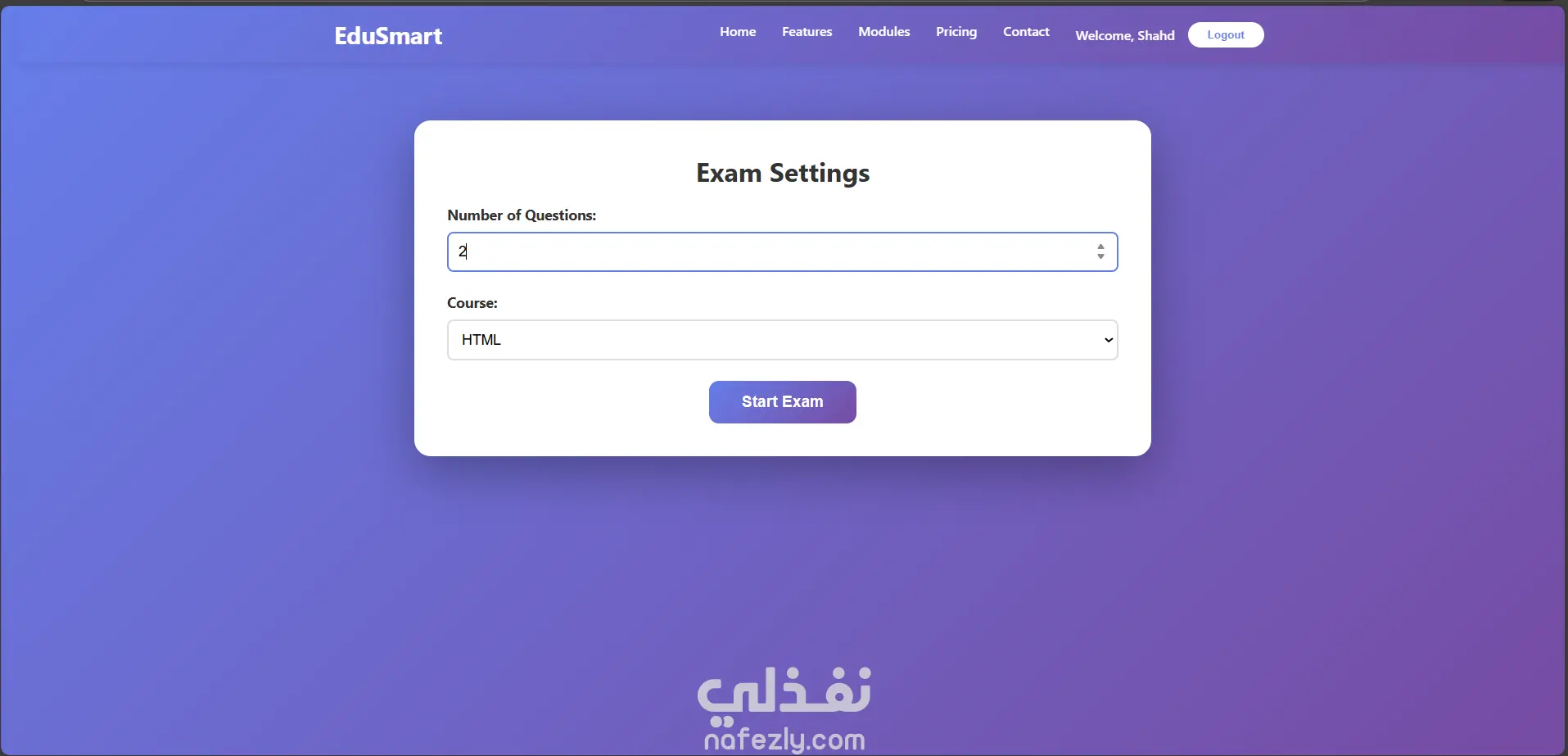 تصميم وتنفيذ منصة تعليمية ذكية وإدارة امتحانات باستخدام HTML وCSS وJavaScript