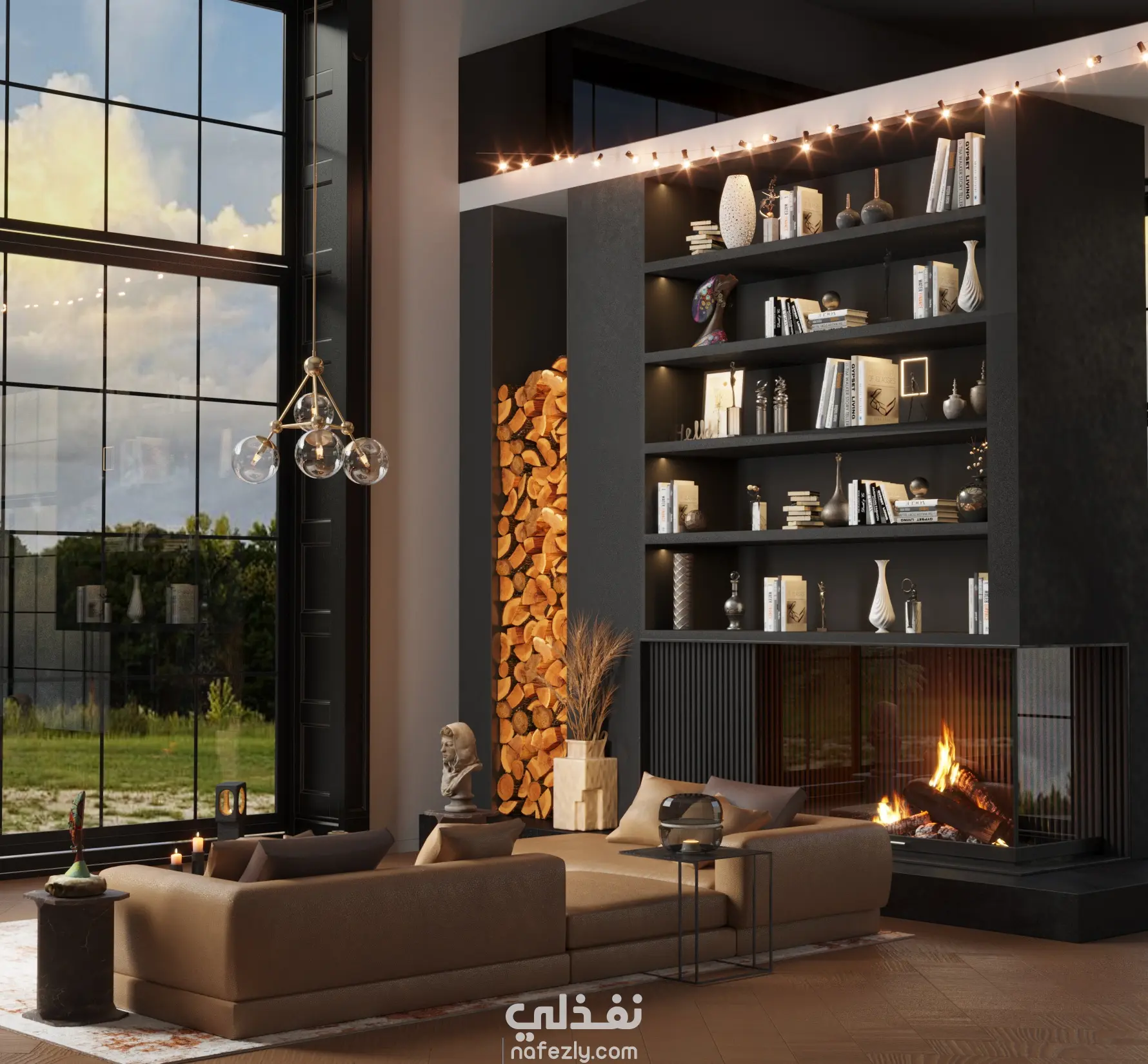 وتكامل التصميم مع تفاصيل معدنية ناعمة وإضاءة دافئة مستوحاة من الطابع الصناعي، ما عزز من أجواء الدفء والتميز، لتكون الجلسة مساحة مثالية للاسترخاء والاستقبال بأسلوب عصري وشخصية واضحة.