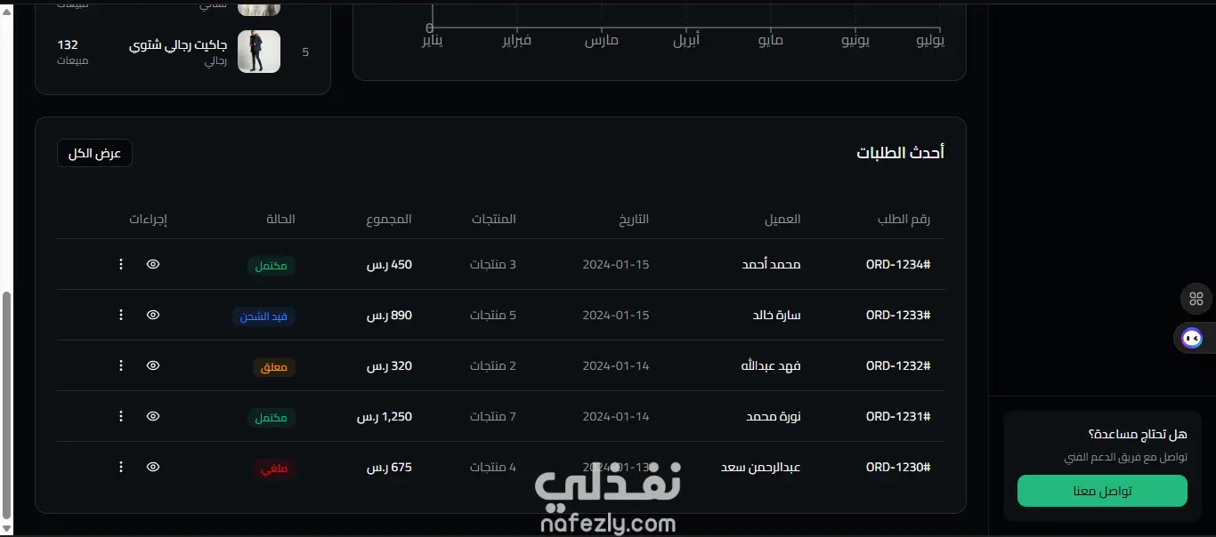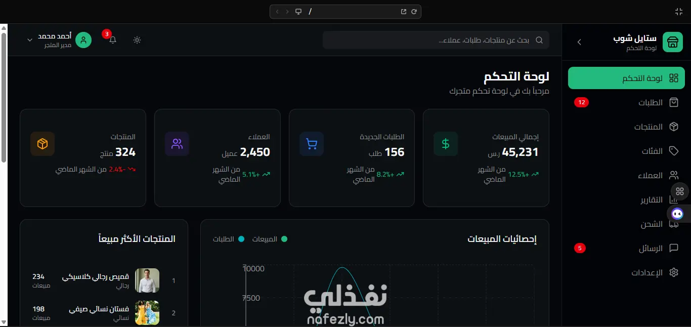 لوحة تحكم مخصّصة لإدارة متجر ملابس إلكتروني، تتيح للمسؤول التحكم الكامل في المنتجات، الفئات، والطلبات من مكان واحد. توفّر إمكانية إضافة وتعديل وحذف المنتجات مع إدارة الأسعار والمقاسات والألوان بسهولة. تم تصميم اللوحة بواجهة واضحة ومنظمة لتسهيل الاستخدام وتسريع عمليات الإدارة اليومية، مع التركيز على الأداء وسهولة التوسع مستقبلًا.