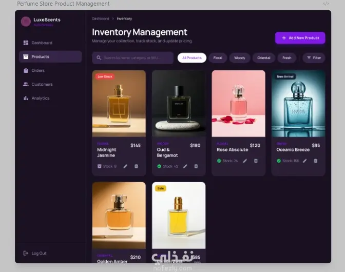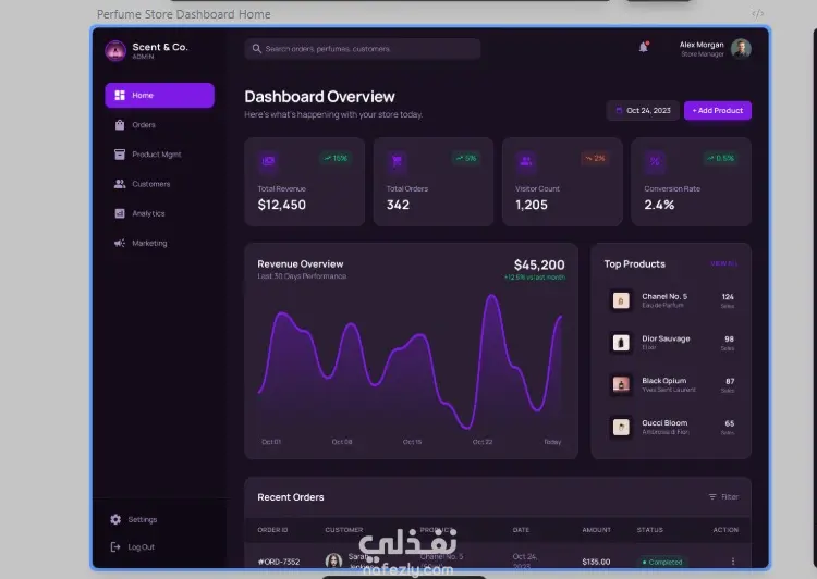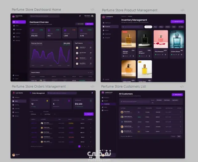 تصميم لوحة تحكم UI/UX لمتجر الكتروني عطور