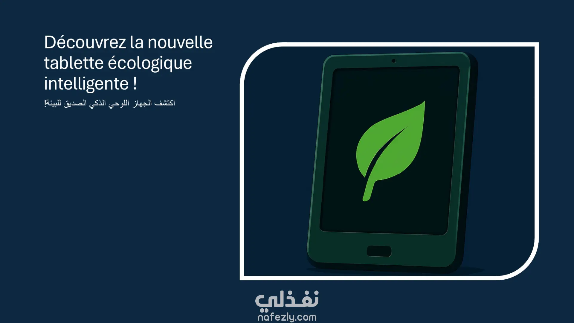 هذا المشروع عبارة عن تصميم عرض تقديمي (Presentation) كامل مكوّن من أربع شرائح، بخلفية موحدة باللون الأزرق الداكن لإضفاء طابع احترافي. العرض يقدّم منتج افتراضي وهو "جهاز لوحي ذكي صديق للبيئة"، ويحتوي على العناصر التالية: