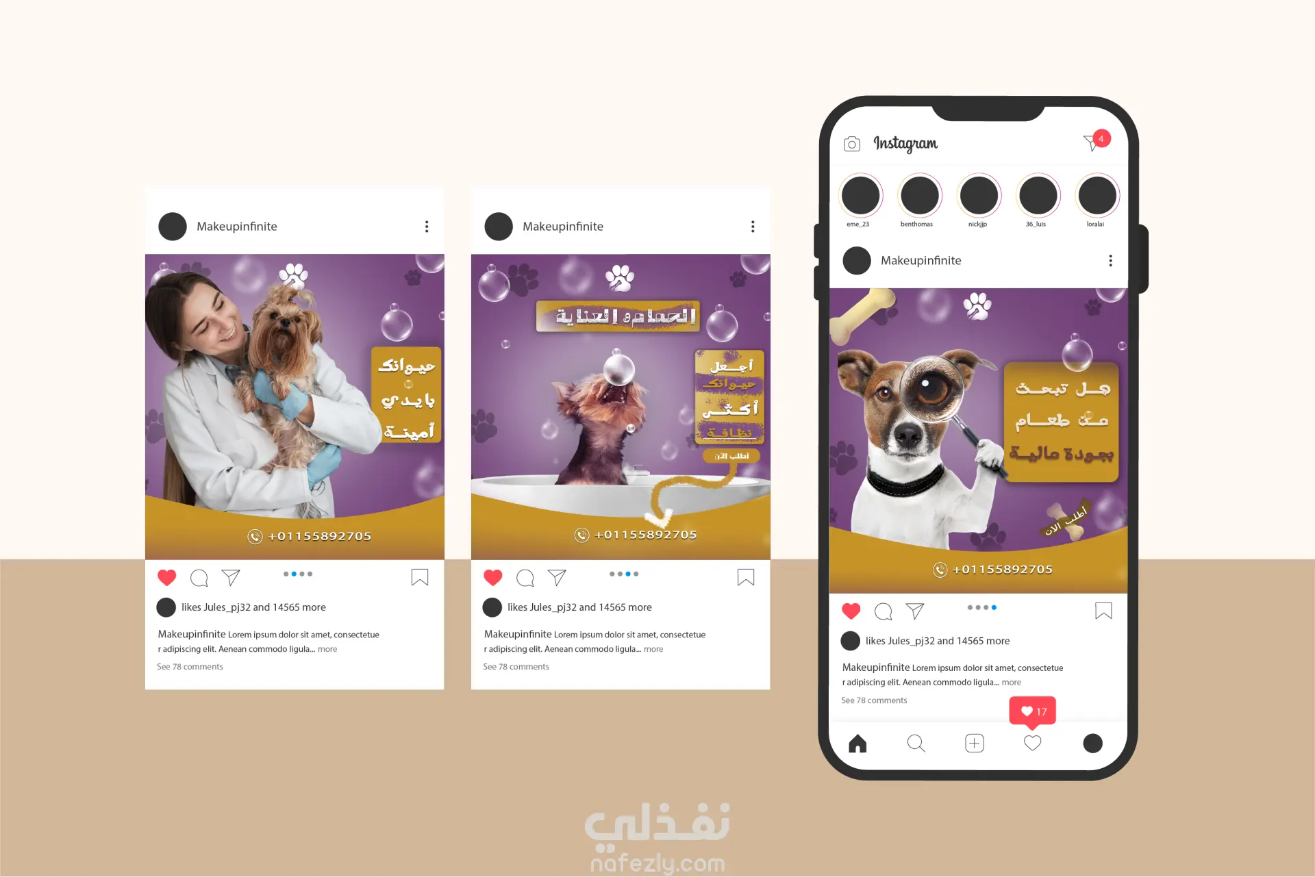 تصميم سوشيال ميديا بهوية بصرية احترافية تخص البيطرية