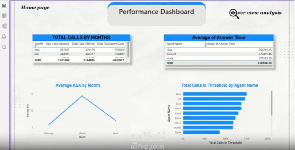I built a Power BI dashboard for Salah Call Center covering Feb–Apr data. I combined the three CSVs in Power Query, cleaned duplicates/missing values, and built a proper model with a Calendar table linked by Date. Key DAX measures included Total Calls Offered/Handled, Abandonment Rate, Efficiency, Avg ASA, and Agent Answer Time. The dashboard has three pages: Home, Overview, and Agent Performance, giving clear insights into call volume, trends, and agent efficiency.