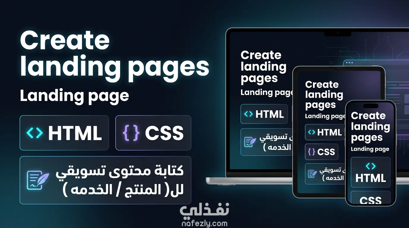 تصميم و كتابة صفحات هبوط احترافية (Landing Page) متجاوبة وسريعة بـ HTML وCSS تفاصيل العمل