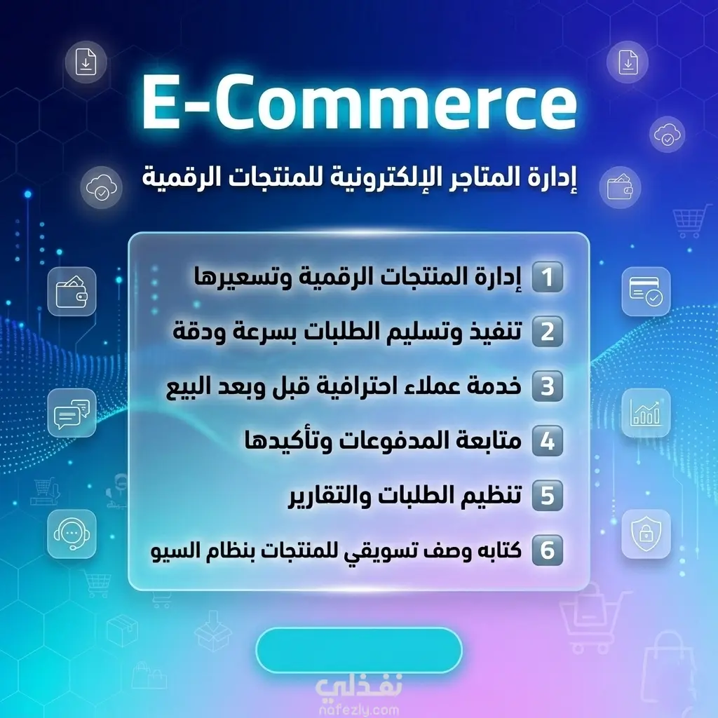 أنا أقدّم لك خدمة إدارة متاجر إلكترونية ومنتجات رقمية بشكل متكامل تساعدك على تنظيم متجرك، تحسين تجربة العملاء، وزيادة المبيعات بثبات.