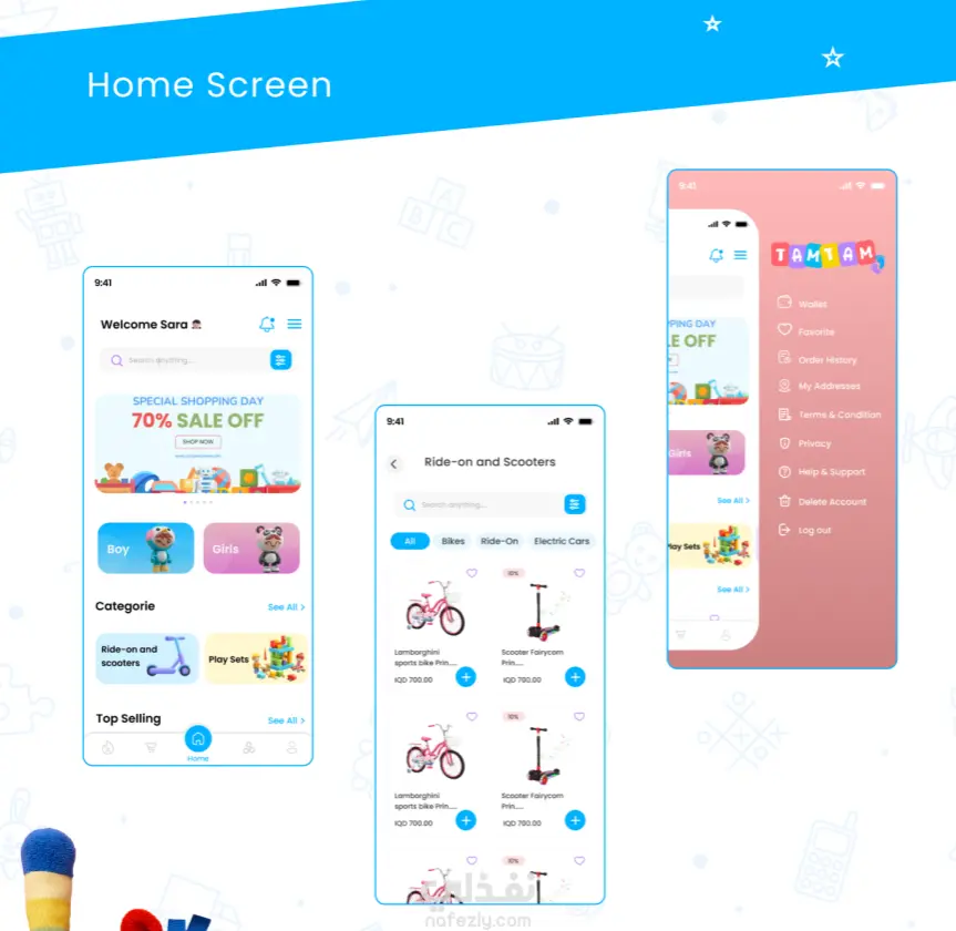 تصميم تجربة مستخدم وواجهات تطبيق متجر ألعاب للأطفال (Kids Games Store App UX/UI)