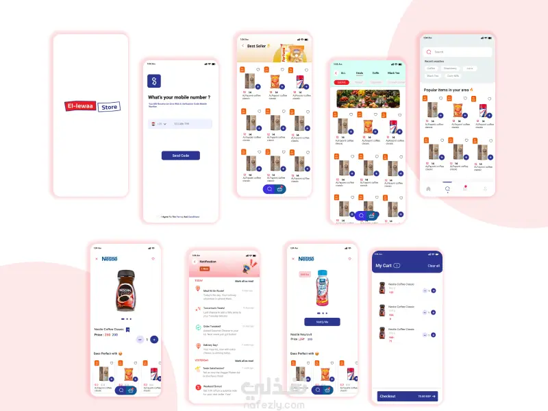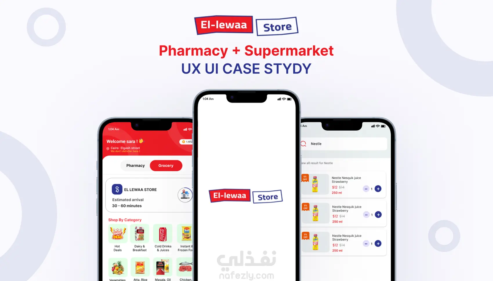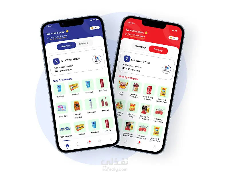 تصميم تجربة مستخدم وواجهات تطبيق متجر إلكتروني (ماركت + صيدلية)