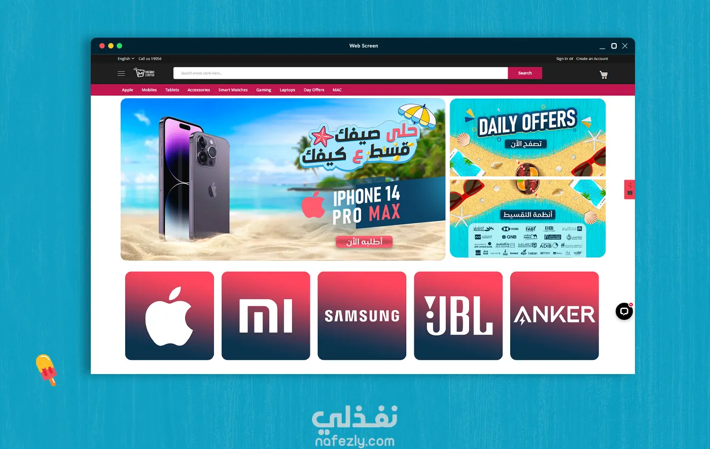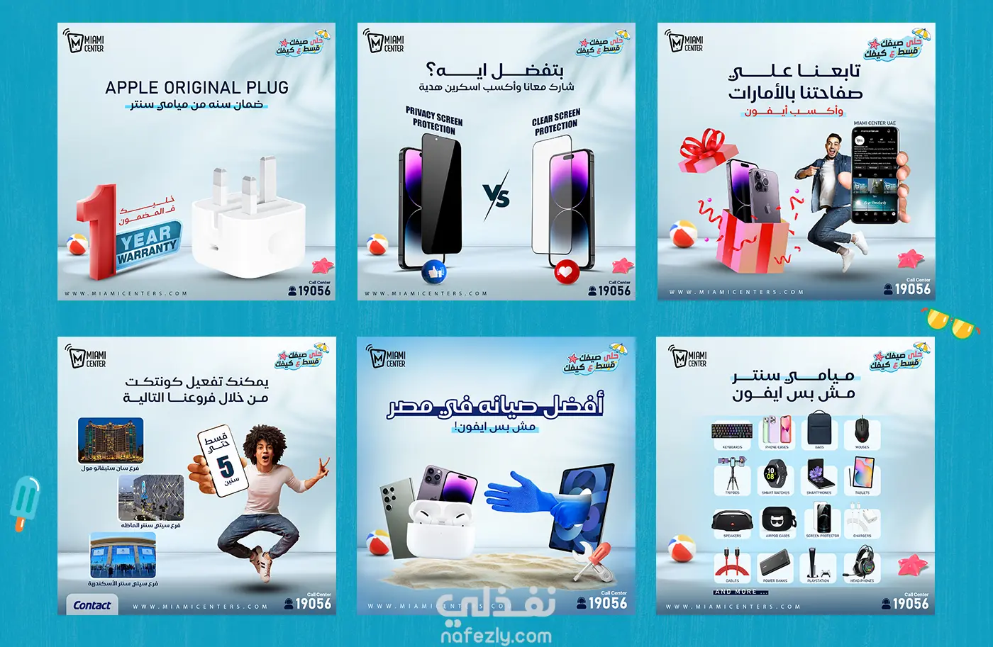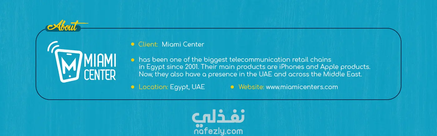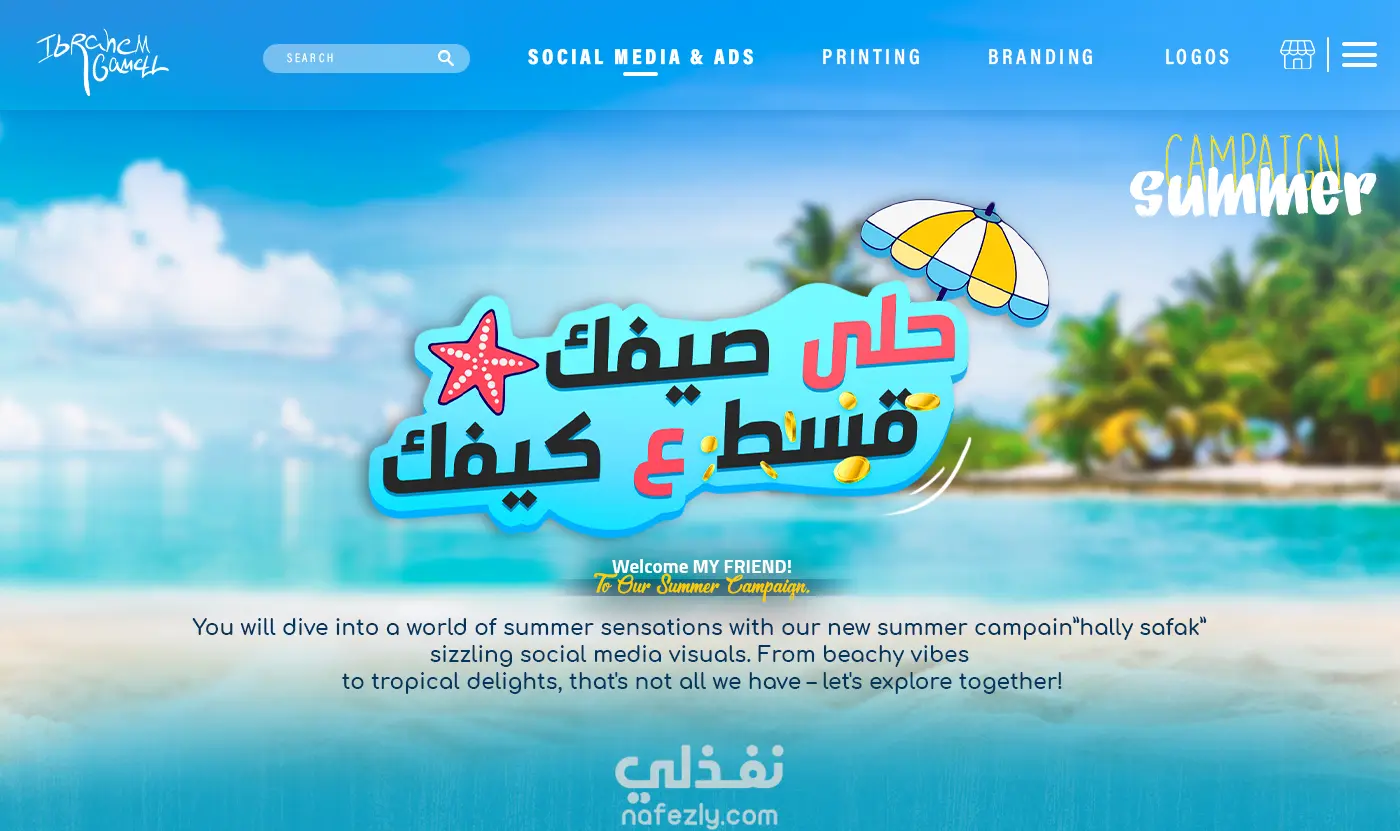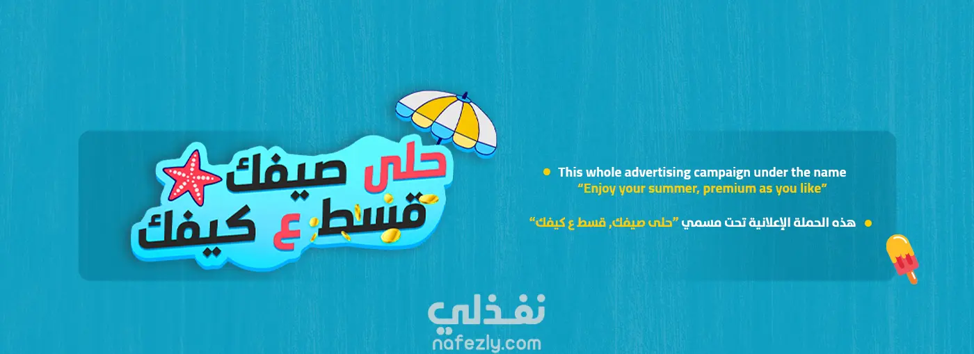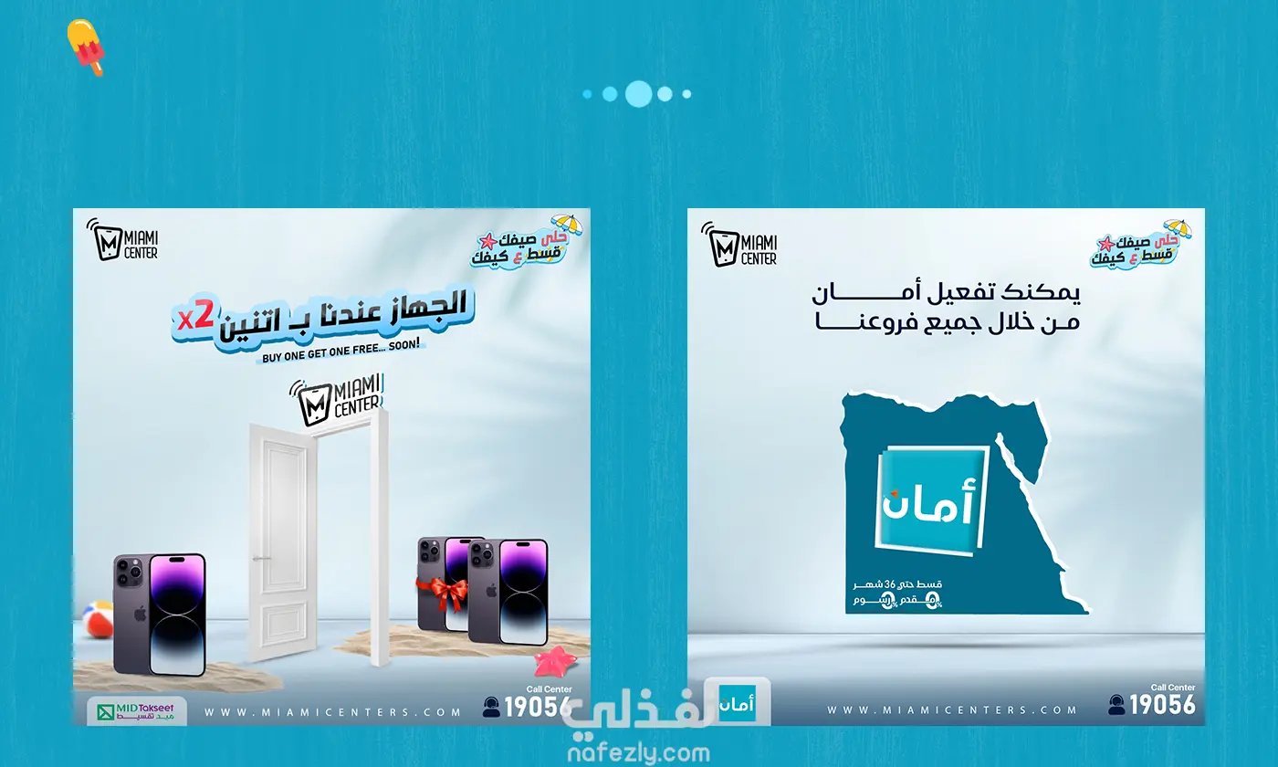 حلى صيفك. قسط على كيفك هذه الحملة الإعلانية قمت بأدراتها لواحده من اكبر الشركات في مصر في مجال الهواتف الزكية تسمي ( Miami Center ) من مختلف التصميمات ل تصميم واجهه الموقع والثيم العام بالكامل والتي كانت تحت مسمي "استمتع بصيفك، كما يحلو لك"