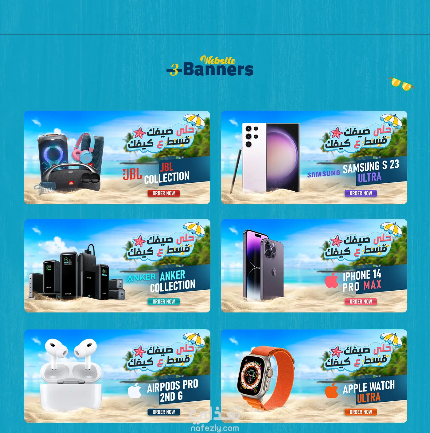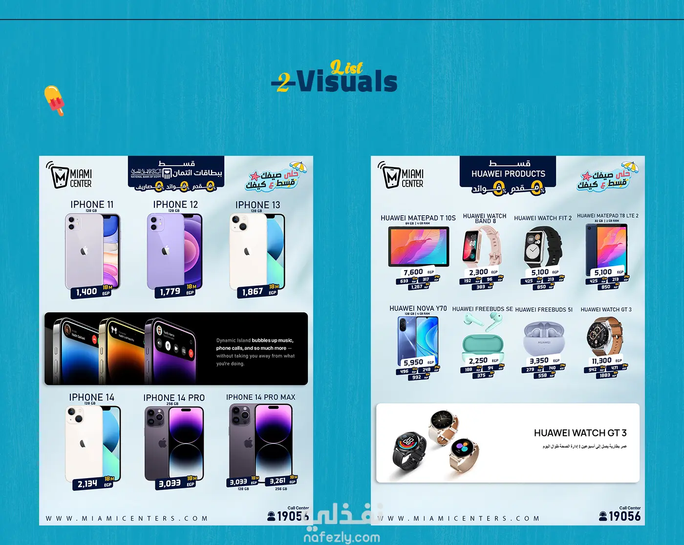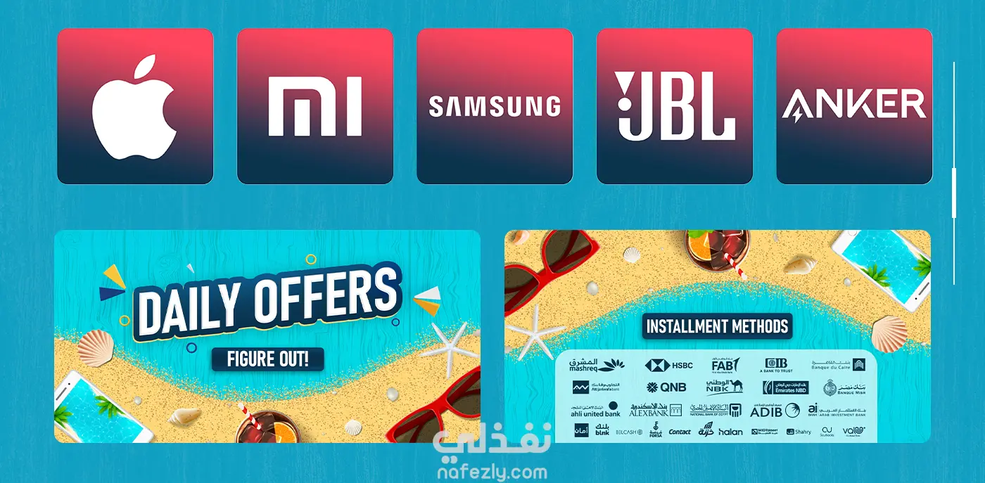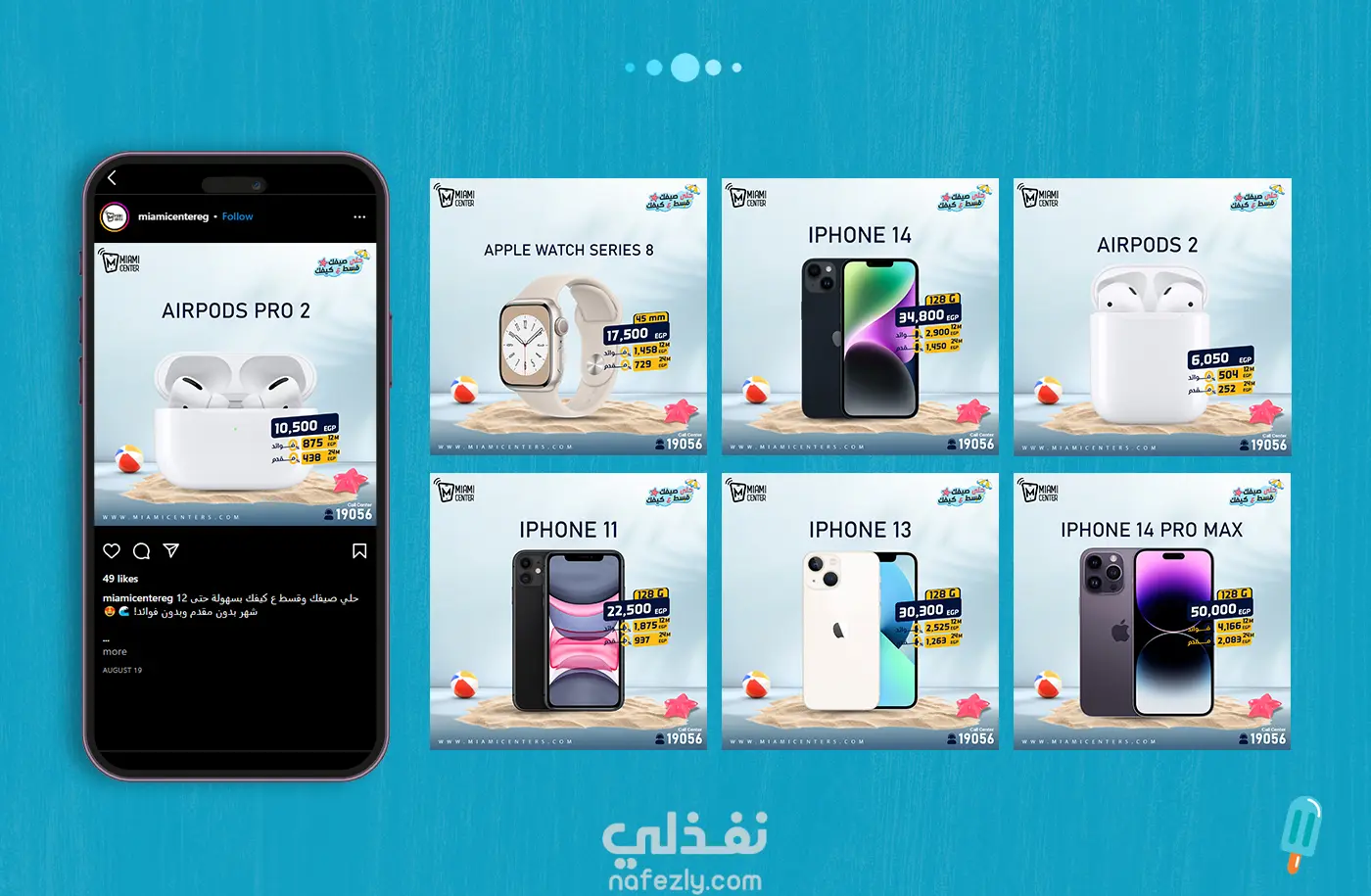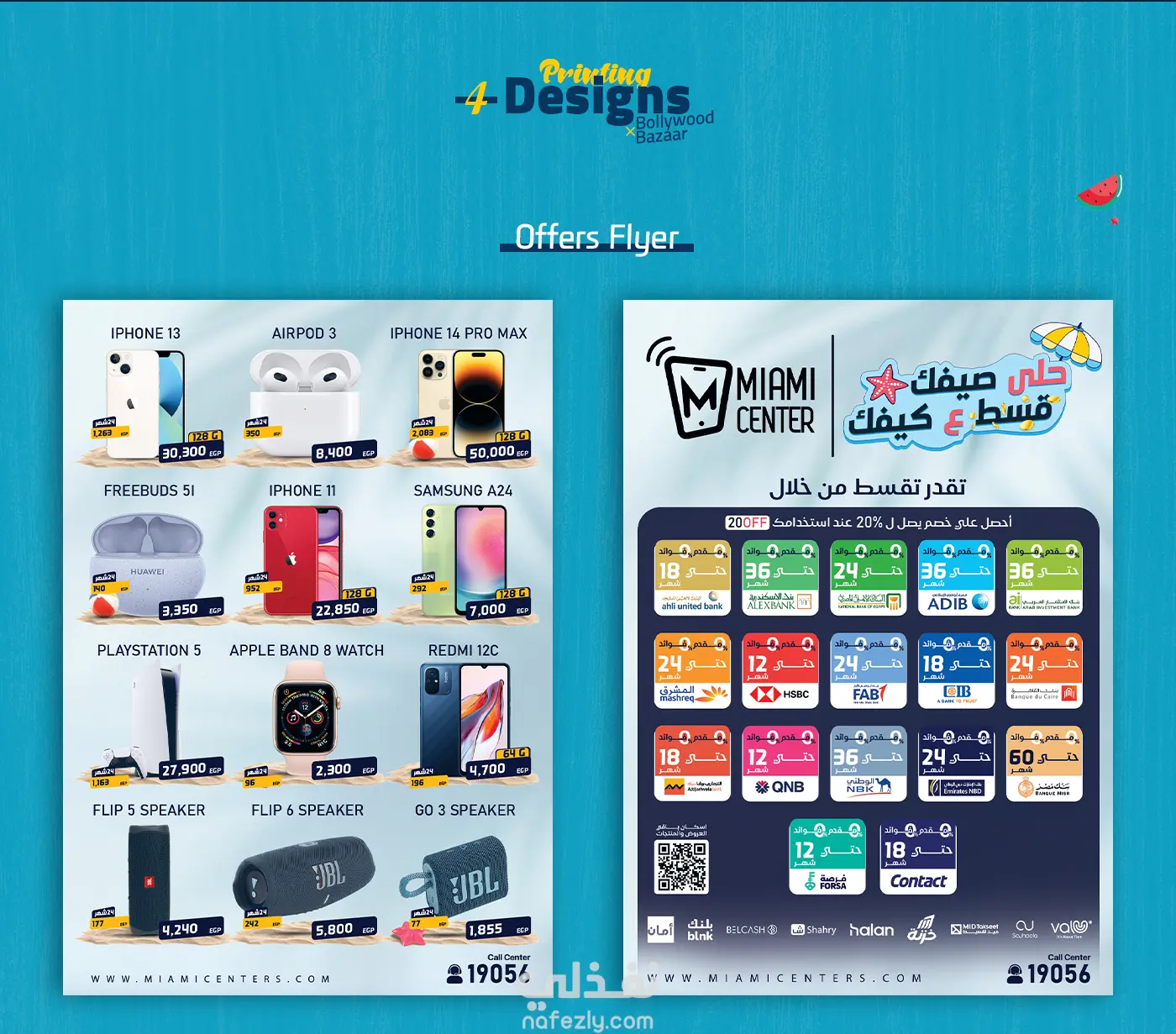 حلى صيفك. قسط على كيفك هذه الحملة الإعلانية قمت بأدراتها لواحده من اكبر الشركات في مصر في مجال الهواتف الزكية تسمي ( Miami Center ) من مختلف التصميمات ل تصميم واجهه الموقع والثيم العام بالكامل والتي كانت تحت مسمي "استمتع بصيفك، كما يحلو لك"
