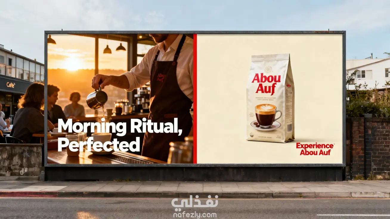 يعتمد التصميم على فكرة الربط بين طقوس الصباح اليومية وتجربة القهوة، من خلال تقسيم بصري ذكي يوازن بين المشهد الإنساني الواقعي والمنتج نفسه.