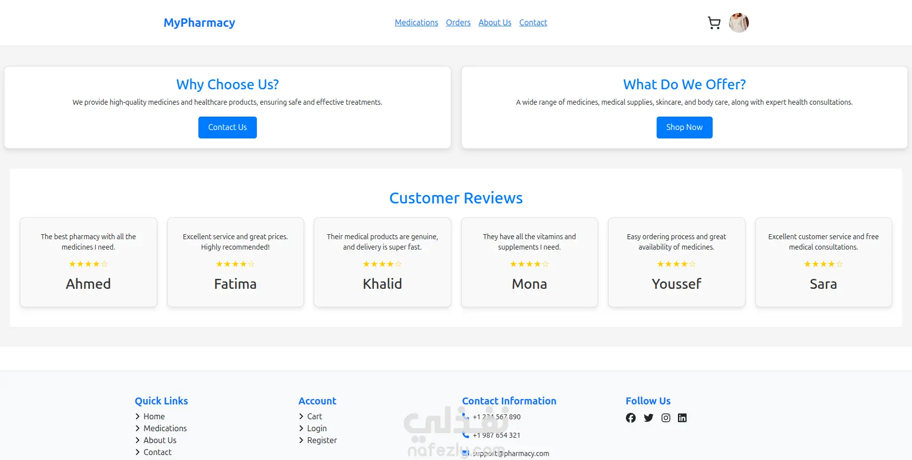 Developed a complete full-stack pharmacy system featuring 50+ product categories with real-time stock updates and order tracking. Built secure RESTful APIs using Laravel and integrated them with a responsive React frontend. Optimized API response time by 40% using Laravel caching, React Query, and database indexing. Implemented authentication, CRUD operations, and