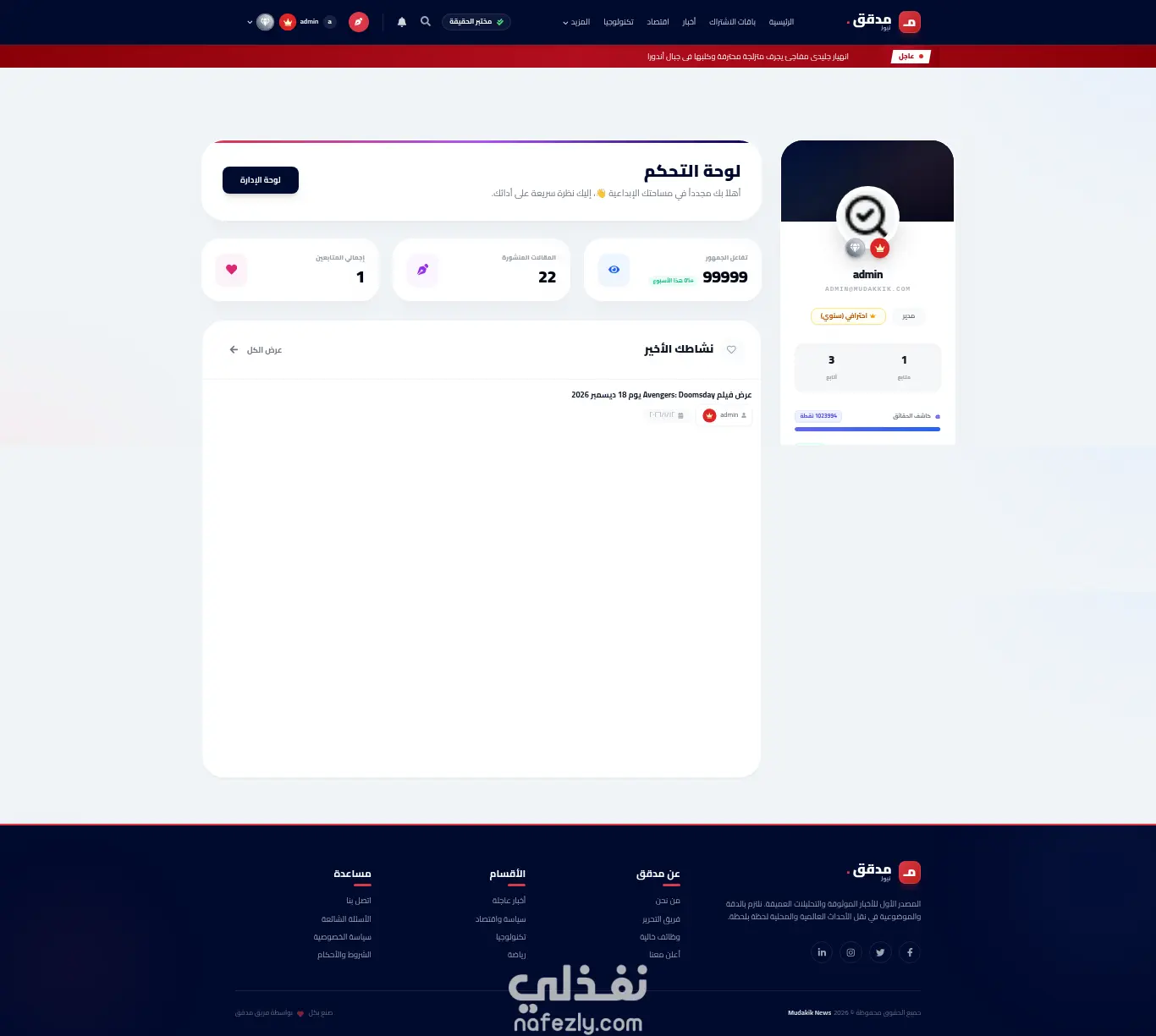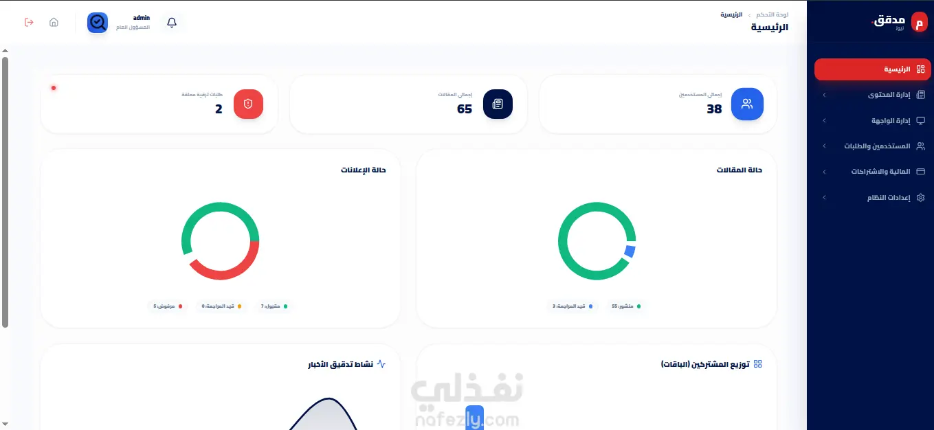 تطوير لوحة تحكم الإدارة: أنشأت أجزاء مهمة من لوحة تحكم المشرفين، لتسهيل إدارة المستخدمين، مراقبة المحتوى، وتتبع الاشتراكات.