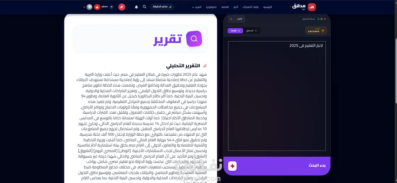 هذا المشروع يوضح خبرتي في التطوير المتكامل، دمج AI، وتصميم لوحات تحكم عالية التأثير، مع التركيز على مكافحة المعلومات المضللة في الإعلام العربي.