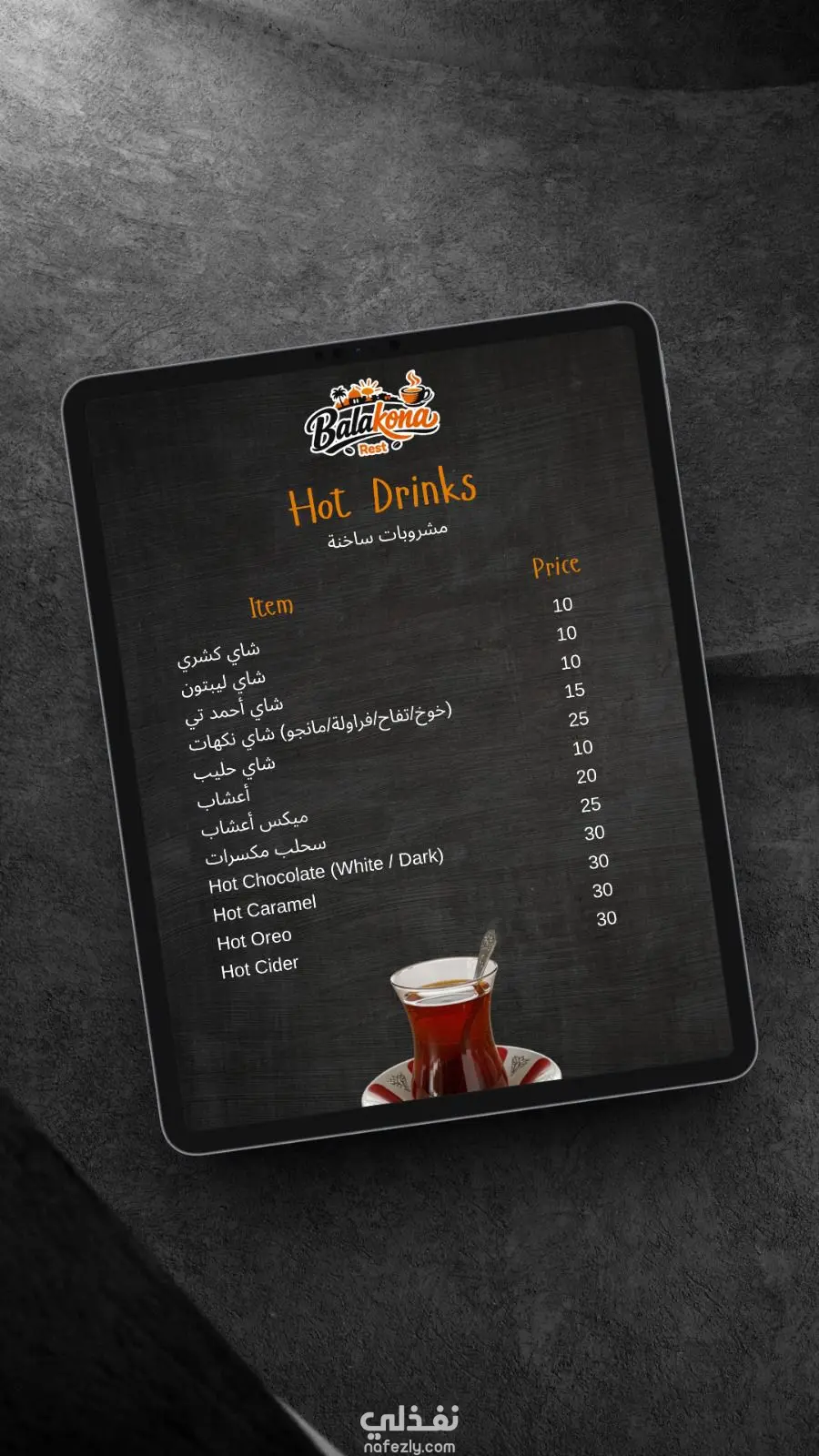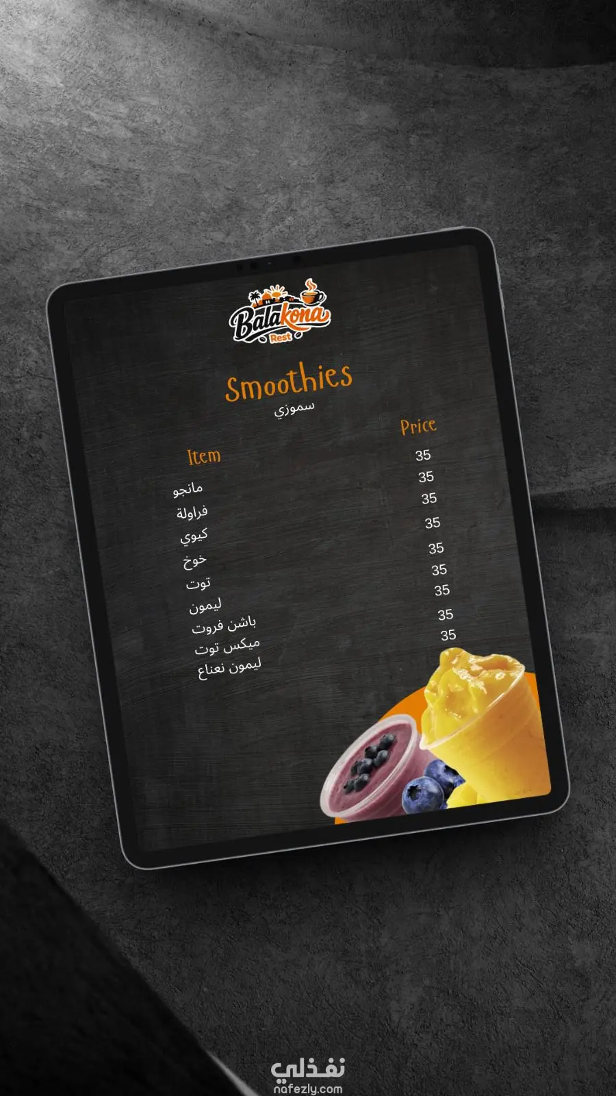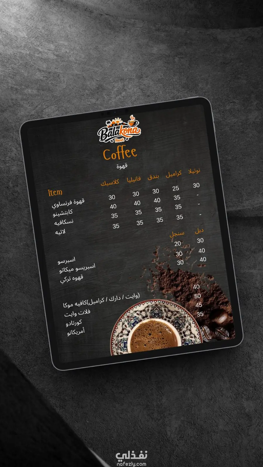 مشروع Balakona Rest Logo & Menu Design هو تصميم هوية بصرية متكاملة لمطعم وكافيه، يشمل تصميم الشعار وقائمة طعام رقمية بأسلوب عصري وجذاب. يعتمد التصميم على ألوان داكنة مع لمسات برتقالية دافئة تعكس أجواء القهوة والطاقة والحيوية، مع استخدام عناصر بصرية مرتبطة بالمشروبات مثل حبوب القهوة والفواكه. تم تنظيم المنيو بطريقة واضحة وسهلة القراءة، مع تقسيم الأصناف إلى أقسام مثل القهوة، المشروبات الساخنة، العصائر الطازجة، السموذي، والميلك شيك، لضمان تجربة مستخدم سلسة ومريحة. الهدف من المشروع هو تقديم تصميم احترافي يعزز هوية المكان ويجعل المنيو جذابًا وسهل الاستخدام سواء على التابلت أو الشاشات الرقمية.