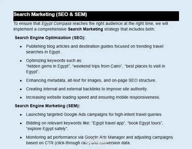 قمت بتصميم وتطوير الموقع الإلكتروني لمشروع Egypt Compass (دليل سياحي رقمي) بشكل كامل باستخدام HTML, CSS, JavaScript من خلال Visual Studio Code، مع تنفيذ استراتيجية SEO متكاملة لزيادة الظهور في نتائج البحث. شمل المشروع: أولاً: تصميم وتطوير الموقع تصميم واجهة المستخدم UI وتجربة المستخدم UX بناء الموقع بشكل متجاوب مع جميع الشاشات تحسين سرعة الموقع والأداء إعداد بنية الموقع بشكل SEO Friendly ثانيًا: تحسين محركات البحث SEO Keyword Research وتحليل المنافسين تحسين العناوين والوصف (Meta Tags) تحسين هيكلة الصفحات والمحتوى تحسين سرعة الموقع وتجربة المستخدم إعداد خطة محتوى للمقالات والصفحات ثالثًا: التخطيط للنمو طويل المدى Roadmap للـ SEO Growth خطة محتوى شهرية استهداف كلمات مفتاحية سياحية عالية الطلب تحسين الظهور العضوي Organic Traffic الهدف من المشروع كان تحويل الموقع إلى منصة سياحية رقمية قوية تساعد المستخدمين على اكتشاف أفضل الأماكن السياحية داخل مصر بسهولة.