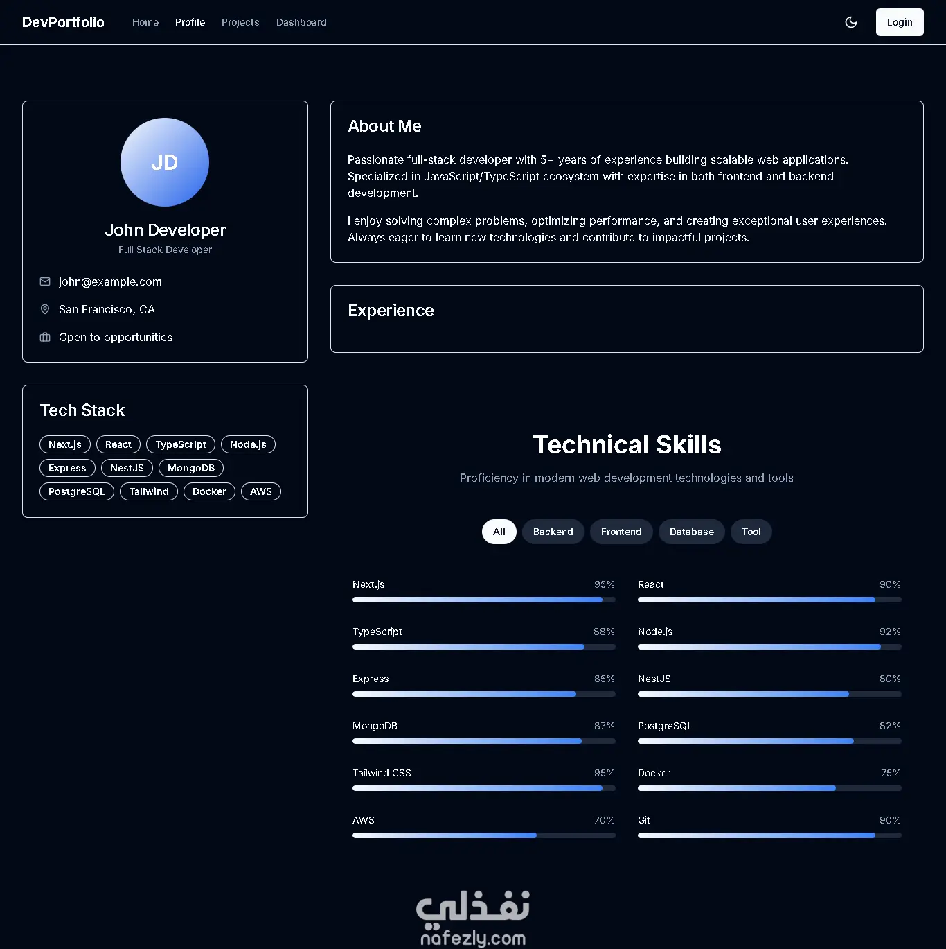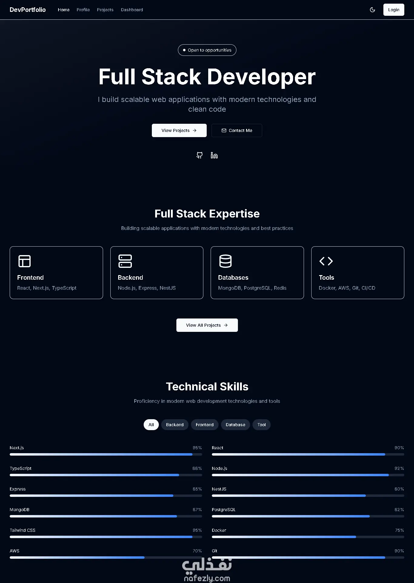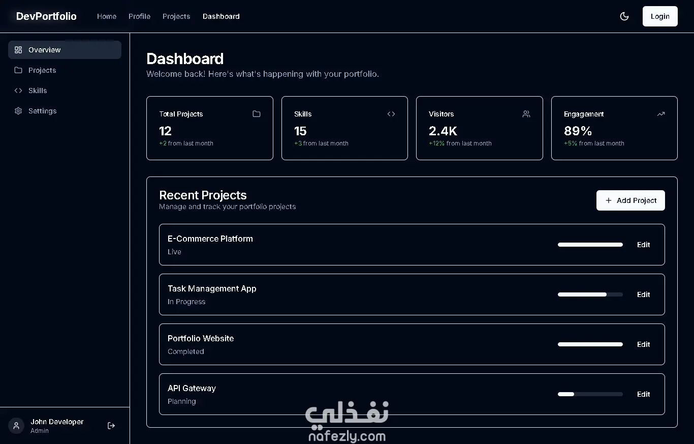 موقع بورتفوليو شخصي تم تصميمه وتطويره باستخدام Next.js وTailwind CSS، يهدف لعرض المشاريع والمهارات بشكل احترافي وسهل التصفح. الموقع يحتوي على واجهة Dashboard لعرض المشاريع بشكل منظم، مع صفحة Profile تعرض معلوماتي وخبراتي وروابط التواصل. تم التركيز على تجربة مستخدم سلسة وتصميم متجاوب يعمل على جميع الأجهزة، بالإضافة إلى استخدام حركات انسيابية لتحسين المظهر العام.